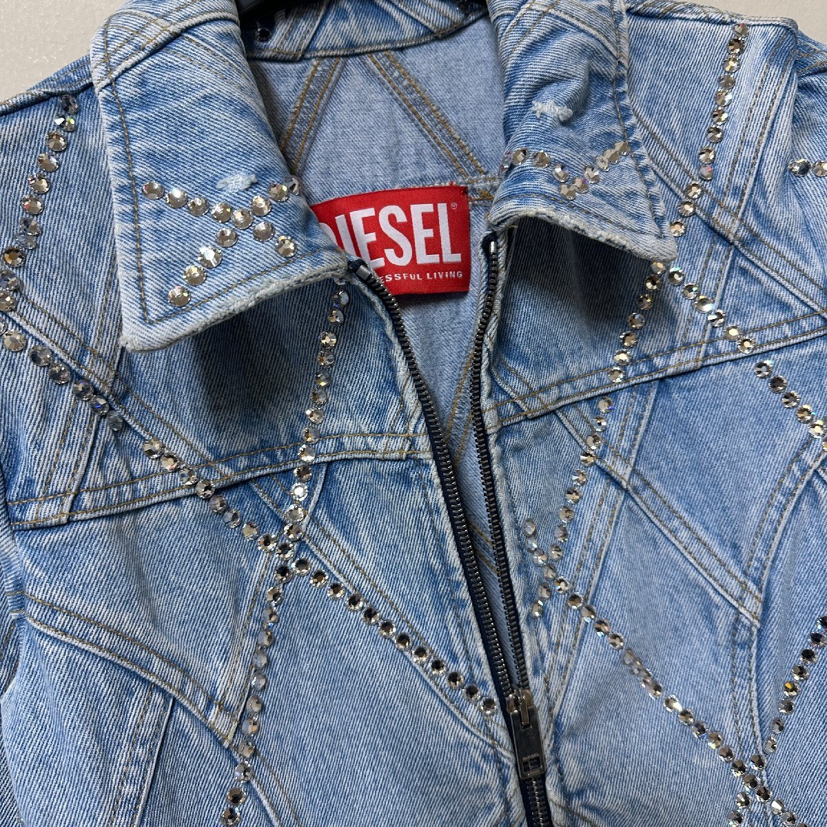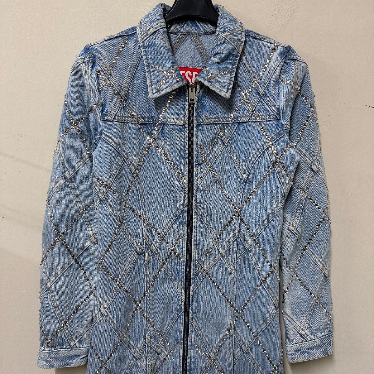 正規品/サンプル品/S■アウトレット品■定価990,000円■DIESEL ディーゼル レディース ロング デニム ジャケット ラインストーン装飾 P228