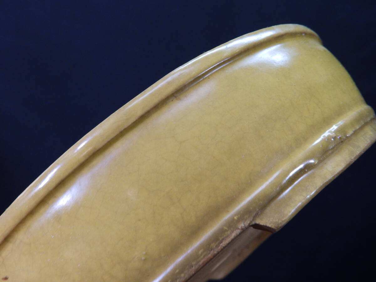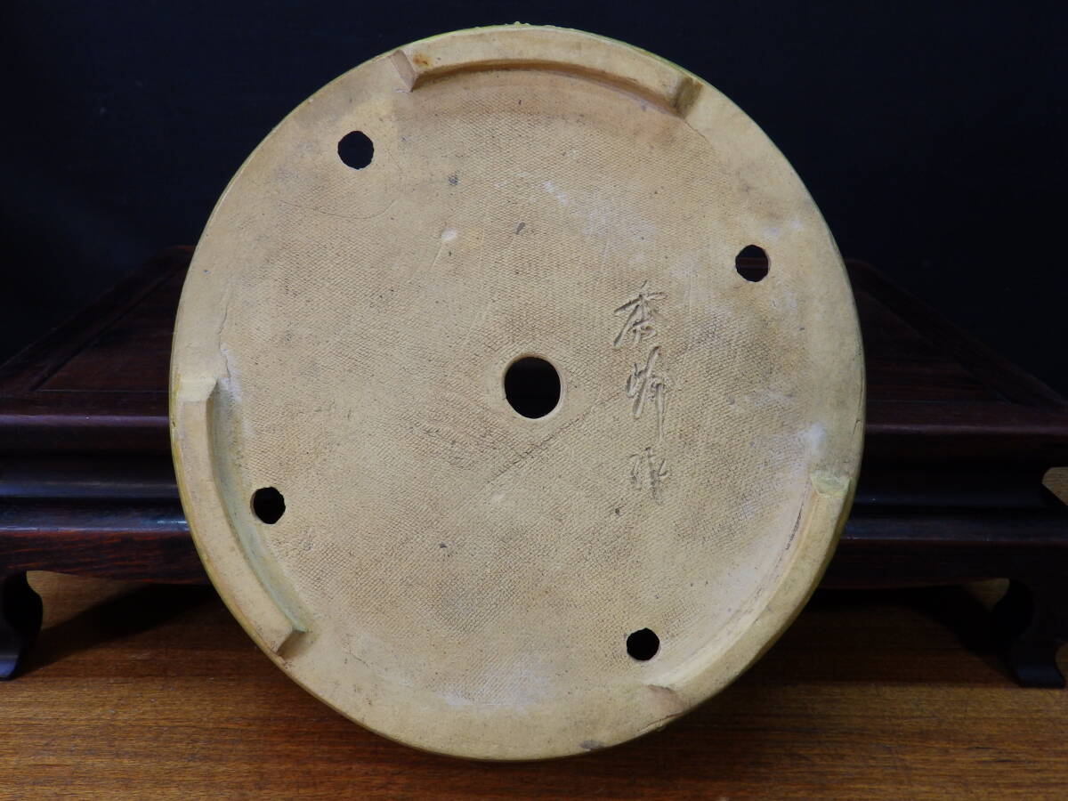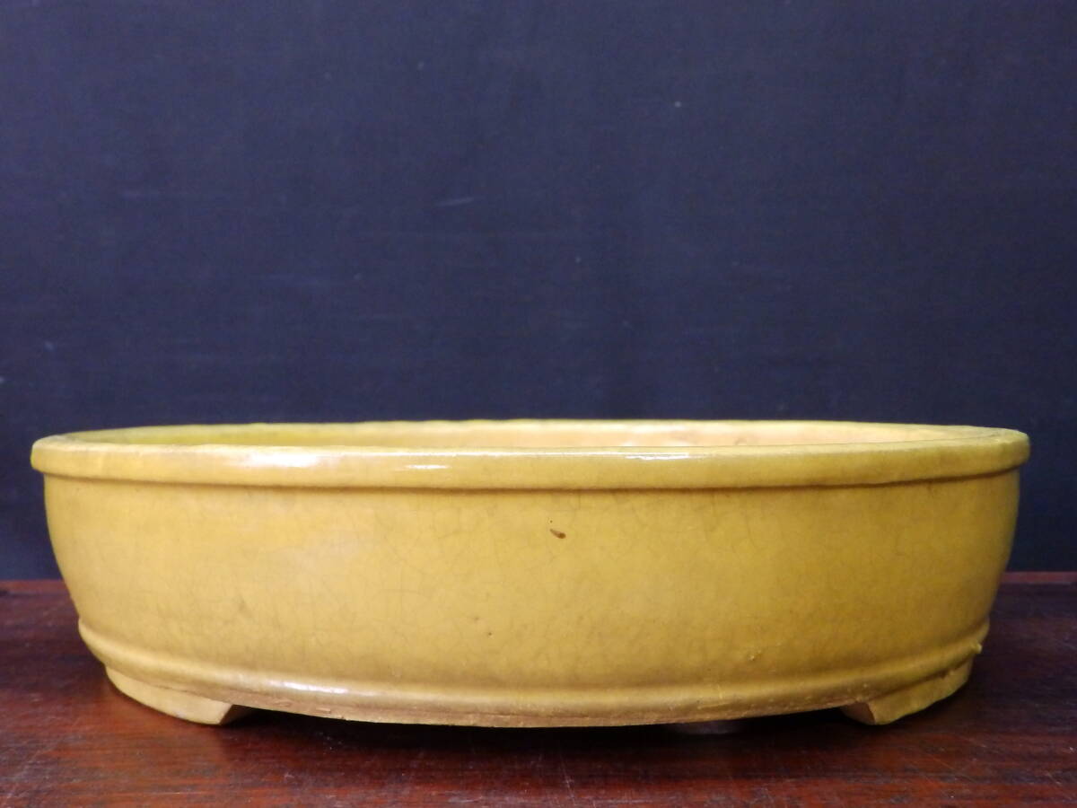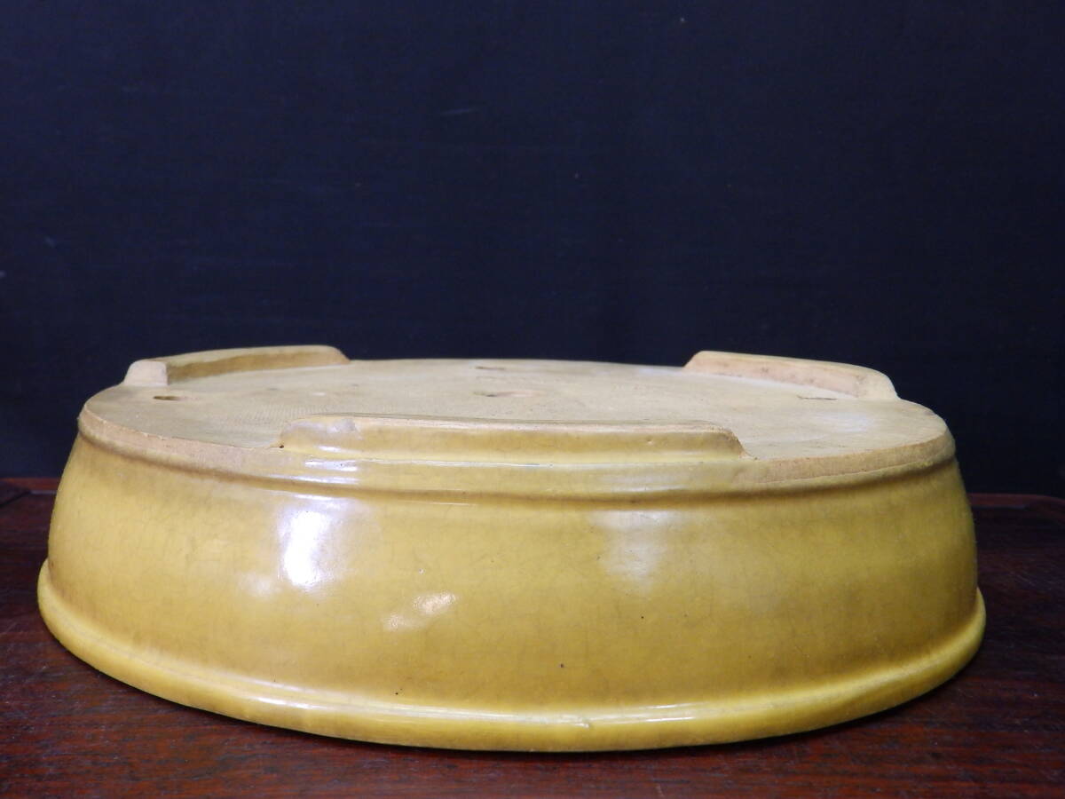 ★盆栽日和★ 和鉢 【義村秀峰】 黄釉上下帯丸鉢・手造り 27㎝