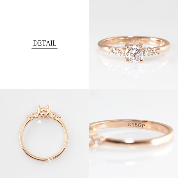 6号 / 新品 指輪 K18GP ソリティア リング 脇石 18金 ピンクゴールド レディース ダイヤ CZ シンプル 人差し指 中指 薬指 プレゼント 女性