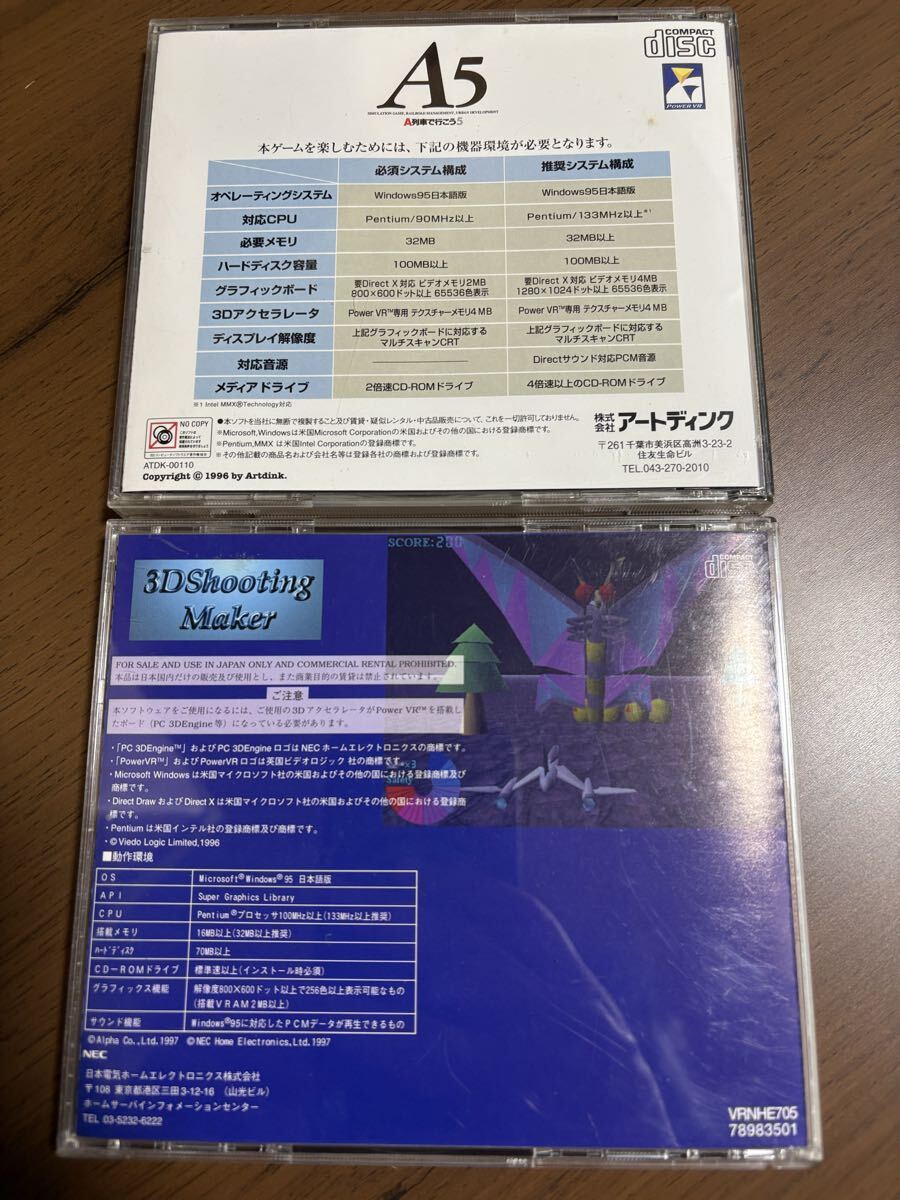 過去に購入してたPC用(Windows 95対応)ソフトです。