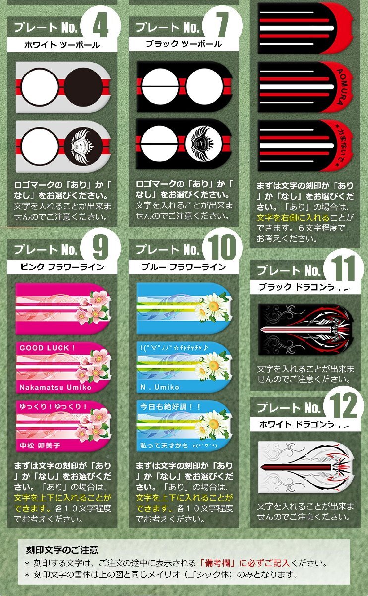 ご希望の『シャフトインチ』及び『プレートの種類(刻印ありの場合は刻印内容も記載)』をご連絡下さい。