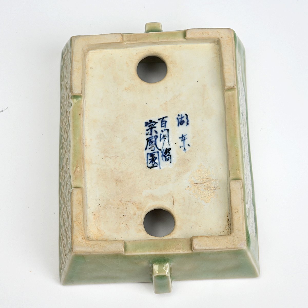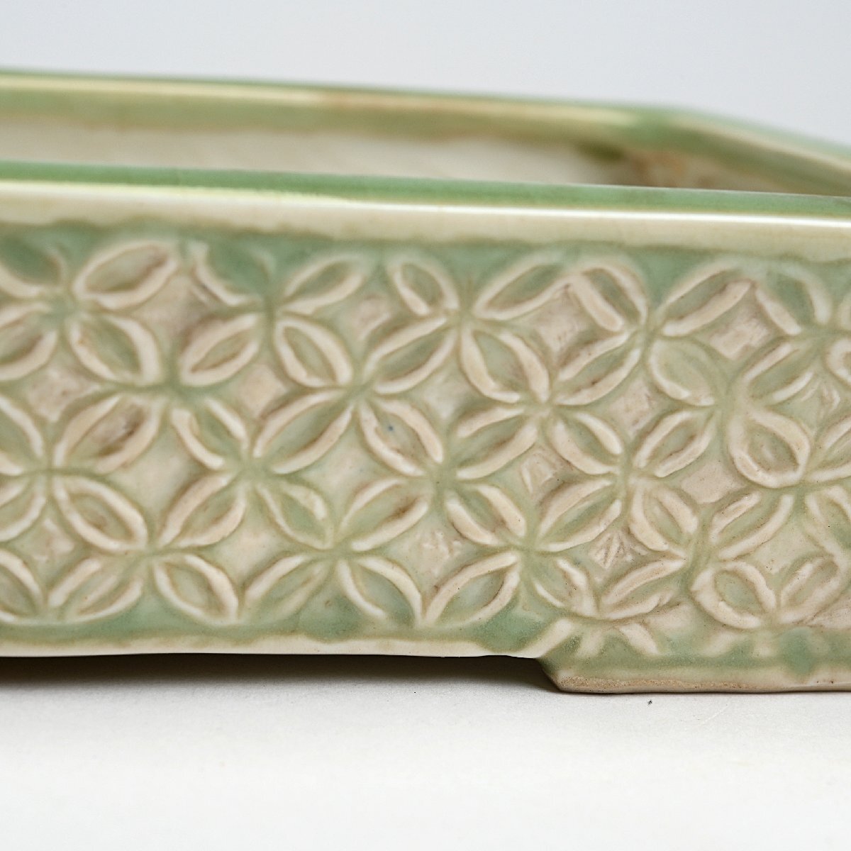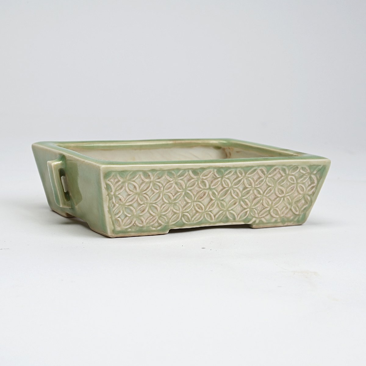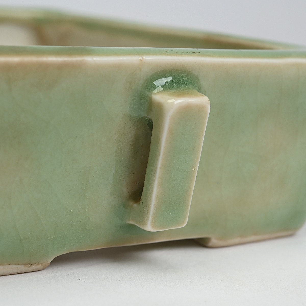 ITIL005 小品盆栽鉢 5 奥村宗山 造 湖東百閒橋 宗鳳園 青磁 七宝獅子文 耳付長方型