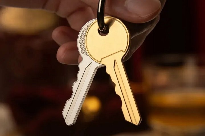 2本の鍵をキーリングに通している状態から、一瞬で1本の鍵を脱出させられます。