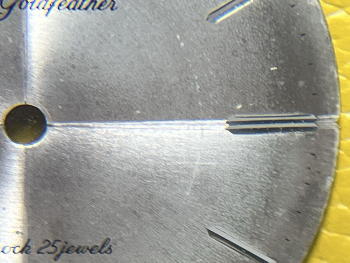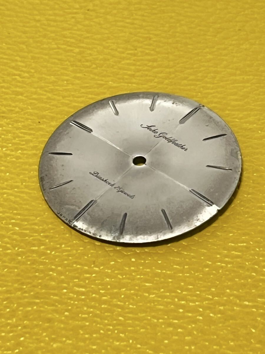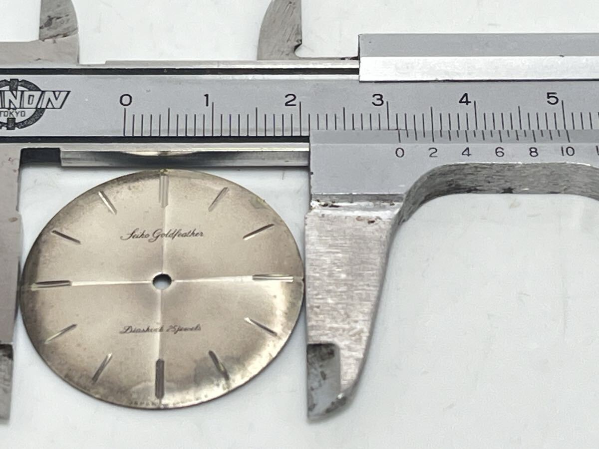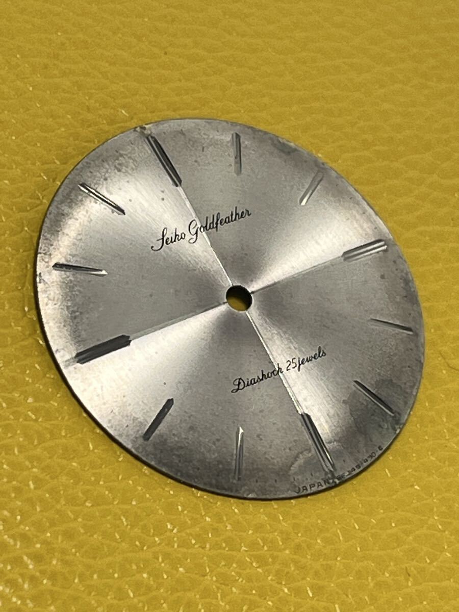 *廃業時計店の保管品でした。セイコーゴールドフェザーの文字盤になります。傷み、劣化が有る中古文字盤ですので画像にて御判断、熟考頂き ノークレーム、ノーリターンでお願いいたします。