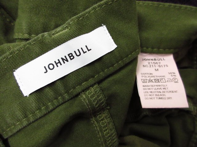3438 美品 JOHNBULL スリムストレッチコットンパンツ Mサイズ グリーン ジョンブル