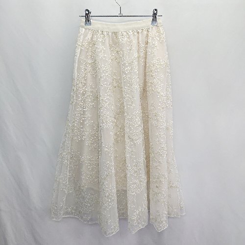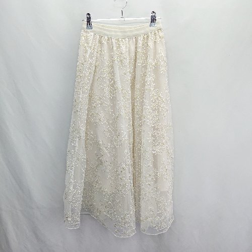 ◇ Θ amie studio アミエスタジオ 総柄 ロング チュール スカート サイズF ベージュ系 レディース E