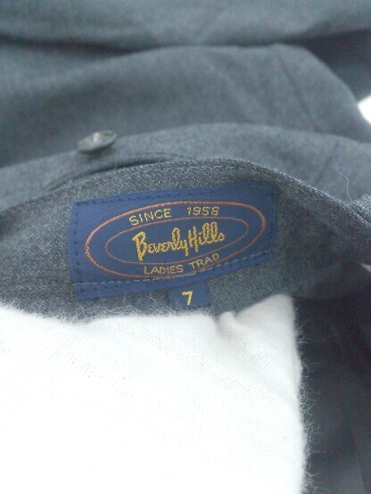 ◇ BEVERLY HILLS ウール100% タック 膝下丈 Aライン スカート サイズ7 グレー系 レディース E