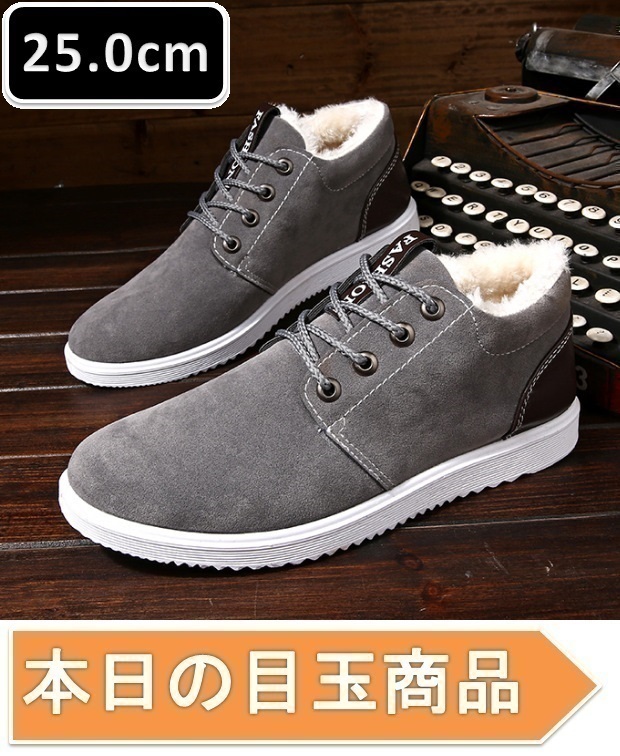 本日の目玉 ☆ 激安 メンズ スニーカー 25.0cm グレー 靴 シューズ 防滑 ランニング ジョギング 通勤 通学 旅行 ハイキング 【236】