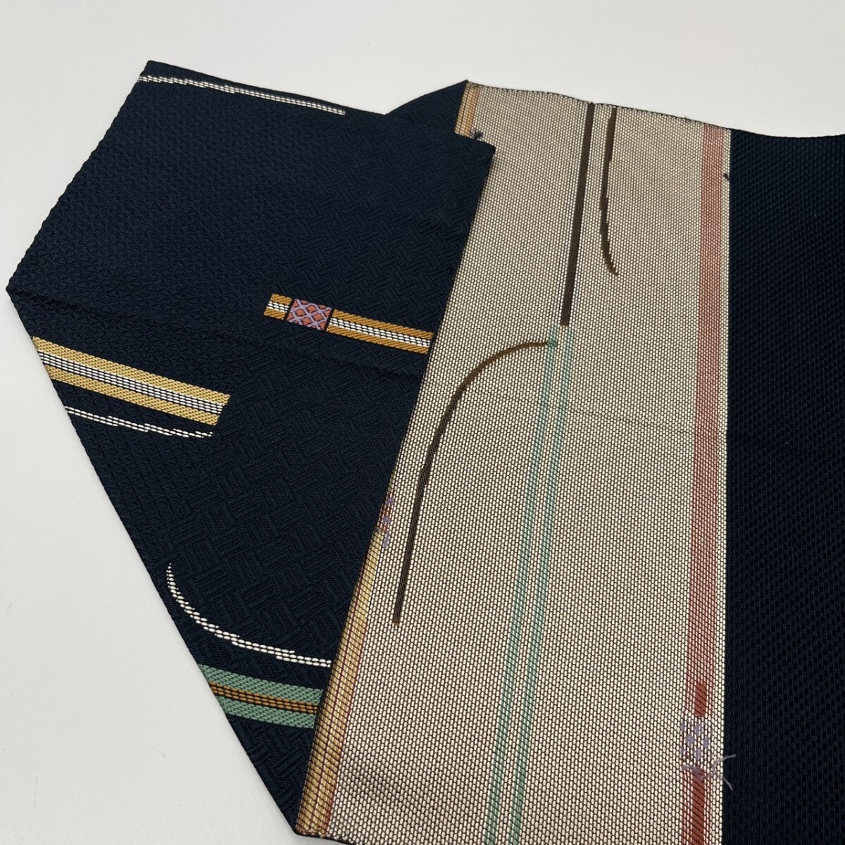 【楓】博多織 名古屋帯 正絹 織柄の粋なデザイン 八寸 KK-2298