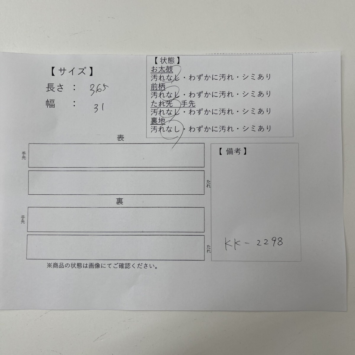 画像内に検品表を掲載しております。