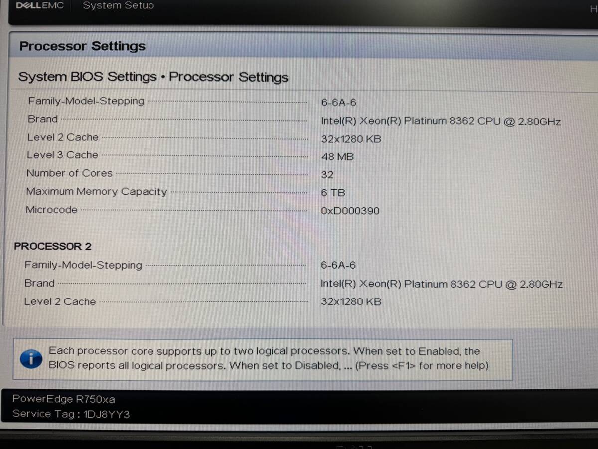 Processor : 2x Intel Xeon Platinum 8362 32Core 2.8GHz