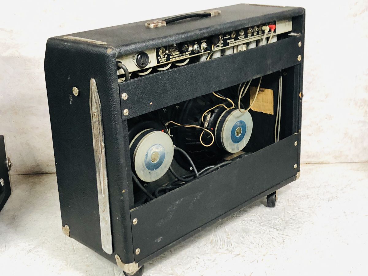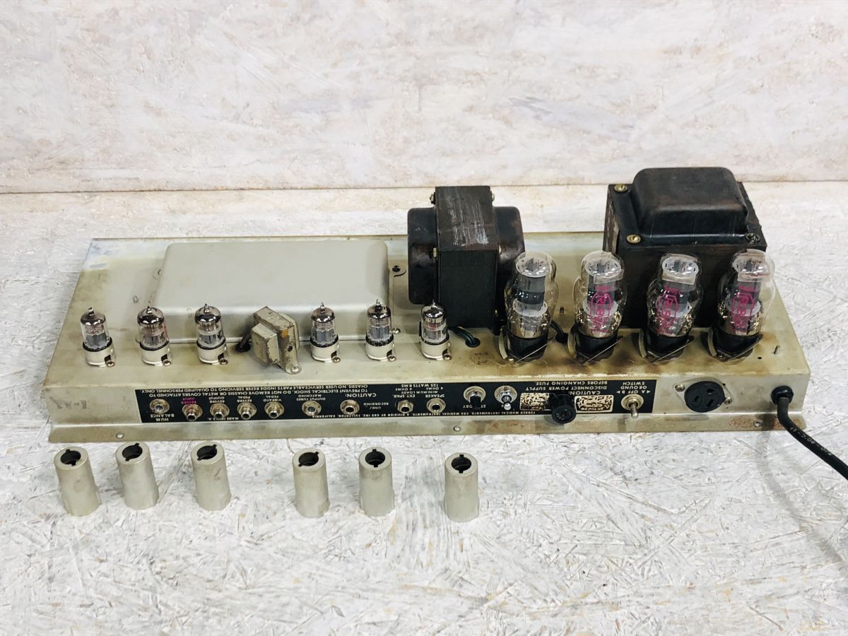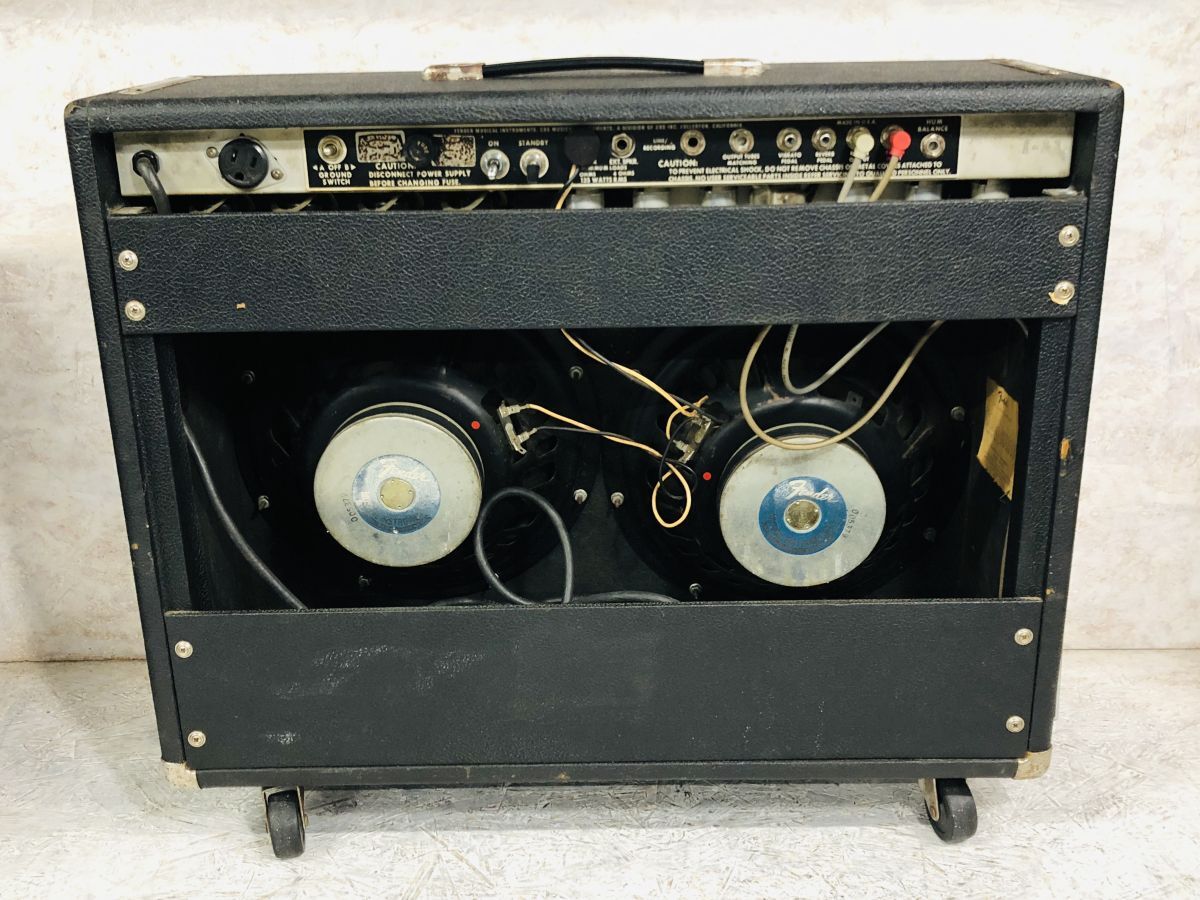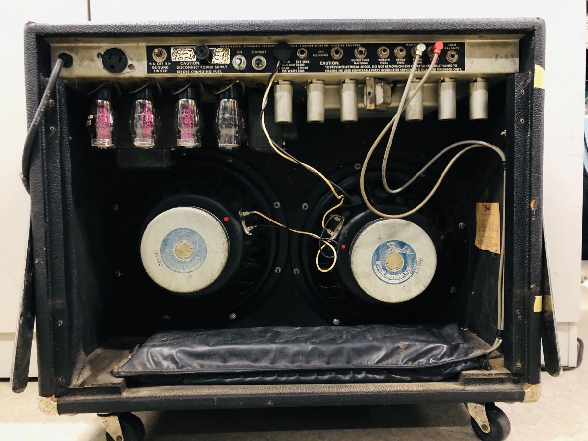 状態 : 年代相応の傷、汚れ、使用感があります。スピーカーネットに破れ箇所があります。気にならない程度のガリがあります。電源スイッチが交換されています。真空管が交換されています。パワー管がRUBY、他はまちまちです。オリジナルと思われるFenderのプリ管もありました。若干ハムノイズがでます。バンドで演奏する分には問題ありません。静かな曲をギター1本で、という感じだと気になるかもしれません。真空管の状態は不明ですが見た感じとても古そうです。前オーナーによると真空管を交換してから30年近くは経っているとのことです。現状で音量は十分出ています。リバーブ、トレモロも正常動作しています。現状お渡しとなります。