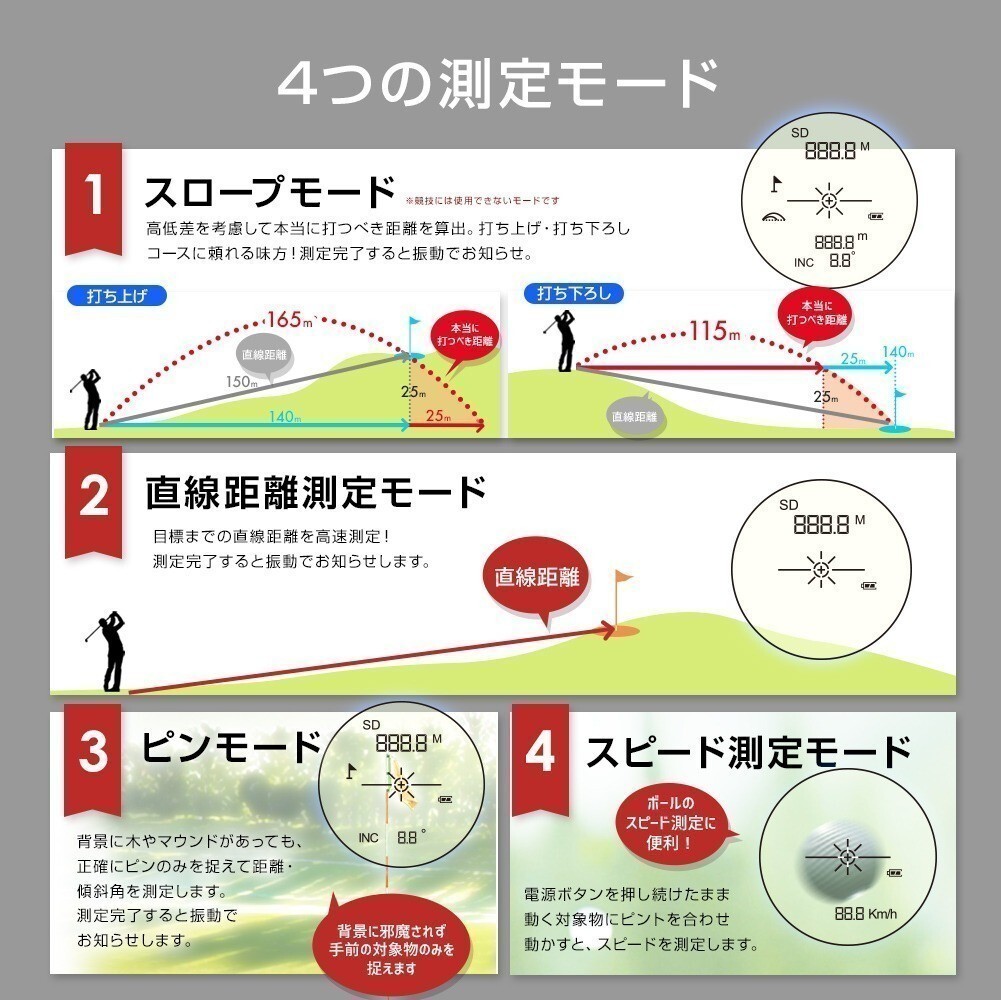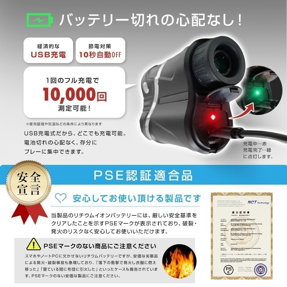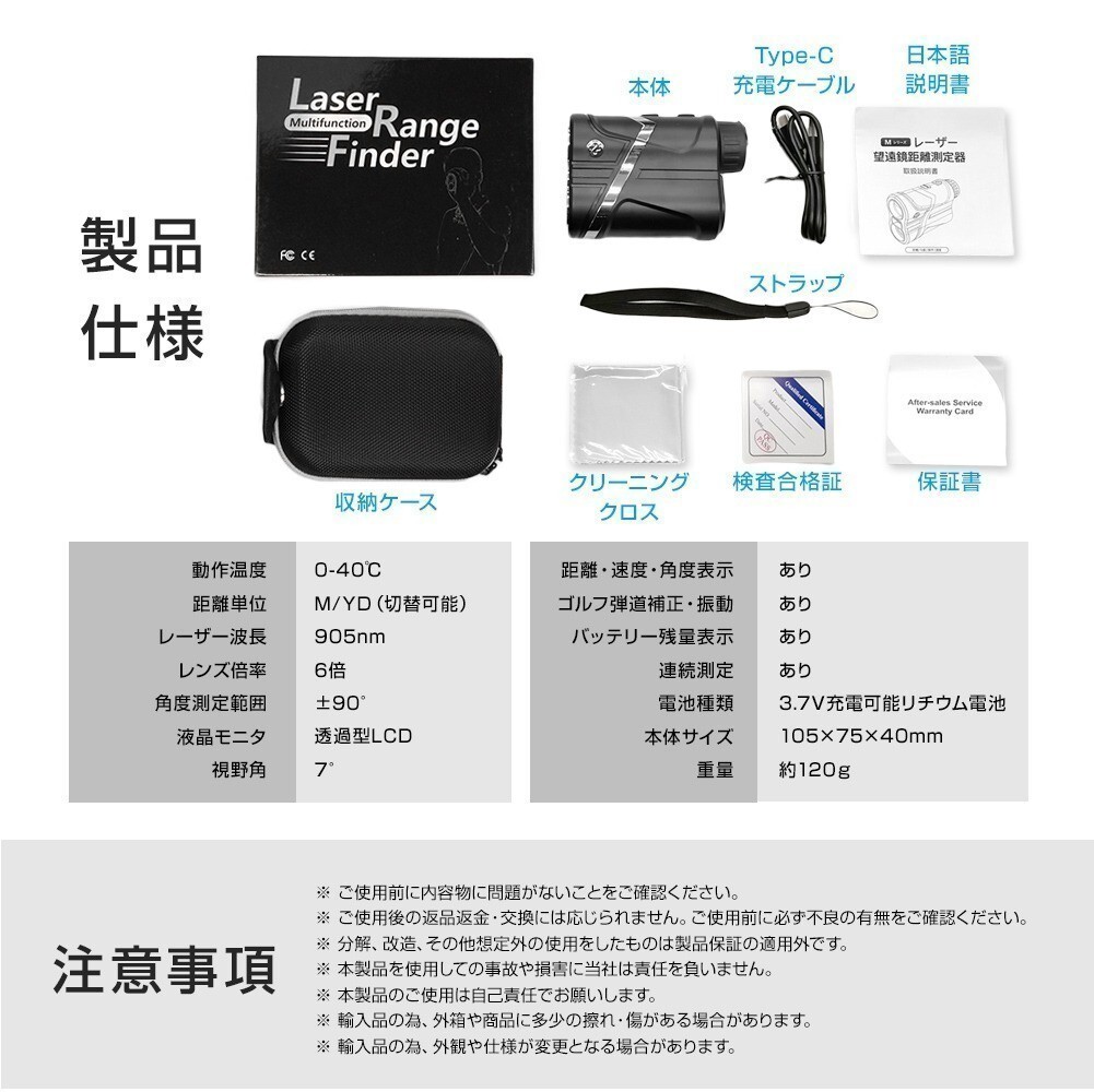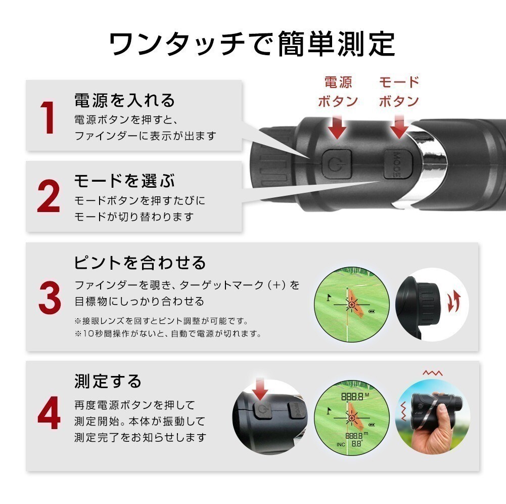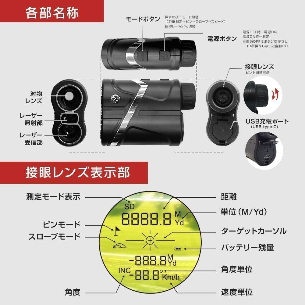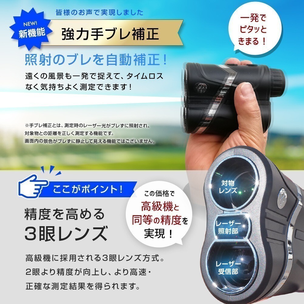 ゴルフ 距離計 レーザー距離計 手ぶれ補正 振動 ピンサーチ コンパクト 光学6倍 高低差 距離測定器 距離計測機 ゴルフ距離計測器 USB充電