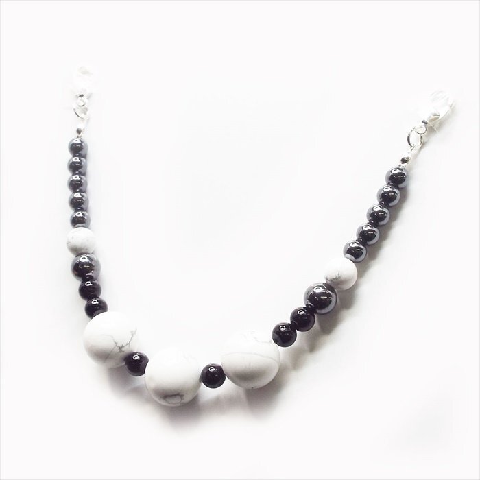 | 【STONE KITCHEN天然石パワーストーン】 大人気の天然石を使用した羽織紐♪ 幅広い年齢の方にお使い頂けます。 着物や帯だけでなくそれらを彩る小物でもおしゃれを楽しみたい♪ 着物姿を華やかに彩るお洒落で存在感のある天然石の羽織紐です☆ お気に入りの羽織りもこちらの羽織紐を付ければイメージも気分もUP!! 着物スタイルをドレスアップしてくれます。 奥ゆかしくも凛とした表情を際立たせる伝統的な和の装い。 細部までオシャレにこだわれば上品さも際立ちます♪ 取り付け留め具は初心者の方でも簡単なカニカンになります。 【サイズ】全長 約21cm 玉サイズ:ハウライトホワイトターコイズ 約14mm・約8mm・約6mm オニキス 約6mm へマタイト(磁気無し) 約8mm・約6mm 留め具:カニカン 1点 注意事項 ※金属部分は汗や汚れ等で変色する場合がございます。気になる場合は 金属磨きや布等で軽くふき取る事をおすすめします。 ※石の種類によっては、艶を引き出すことを目的として、ワックスや着色加工がされているものもあります。 ※表示のサイズは必ずしも最大値・最小値のサイズのものが入っているわけではございません。 ※天然石のため同じものでも色味・模様などが異なります。 ※照明の具合で実際とは色合いが異なる場合がございます。 また、天然素材特有のクラック・内包物を有する場合がございます。予めご了承下さい。 | |||