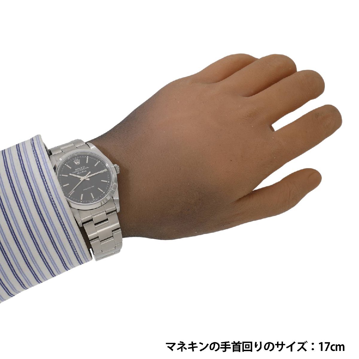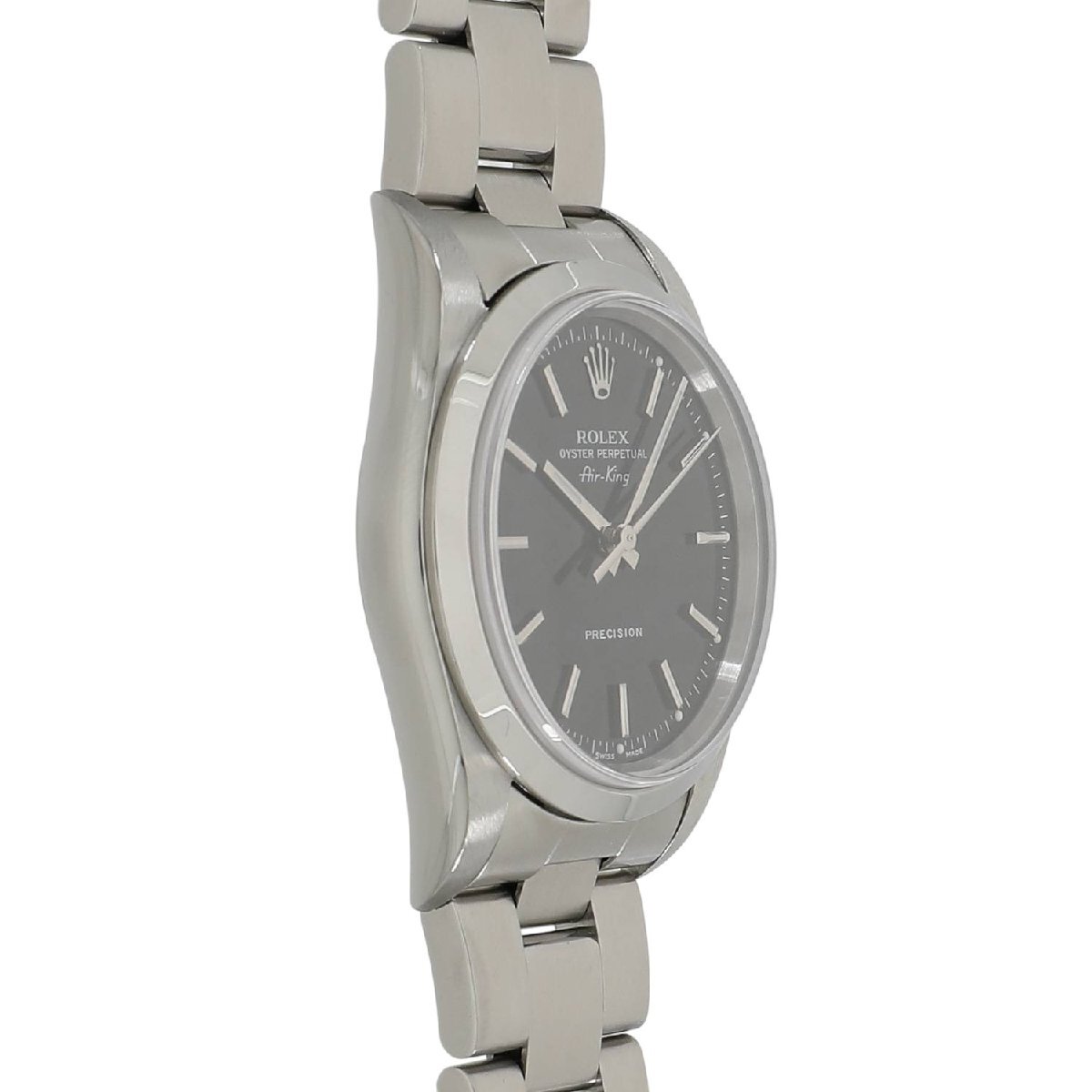 | モデルについて | デイトなどを持たないシンプルなデザインのエアキング。Ref.5500の後継機種として1990年にRef.14000が誕生。ロレックスのコレクションの中でもリーズナブルな価格帯で展開され、エントリーウォッチ的存在として人気を博します。14000の後継機として、Cal.3130を搭載し2001年に14000Mが誕生します。同時期にラインナップされたプロフェッショナルモデルである、エクスプローラーIとサブマリーナーにも採用された高精度ムーブメントです。デイトジャストに比べやや小ぶりな34ミリのケースを採用しており、手首が細めの男性や女性にもおススメできるサイズ感です。 |
