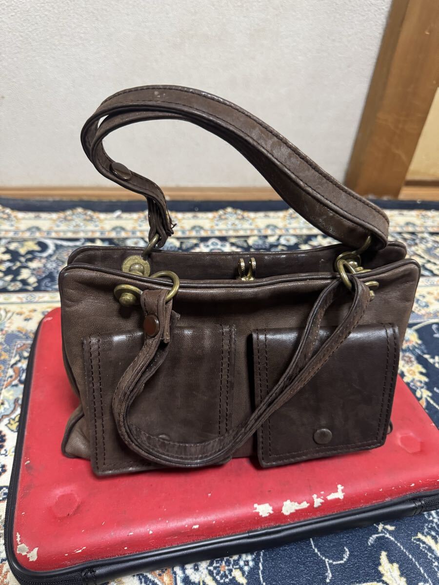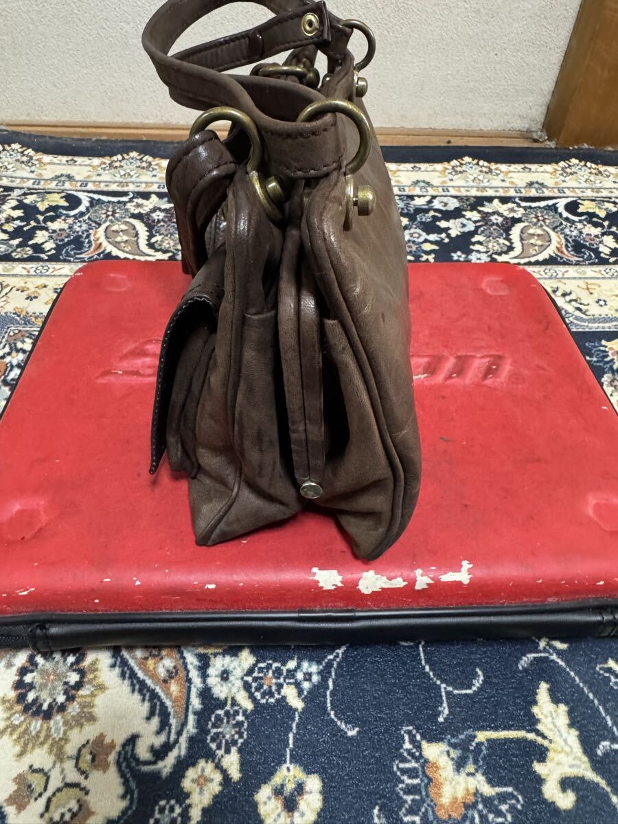 こちらは新品未使用品になります、メーカー不明のハンドバックです、色はダークブラウンで、質感は本革のような感じですが実際には分かりません。