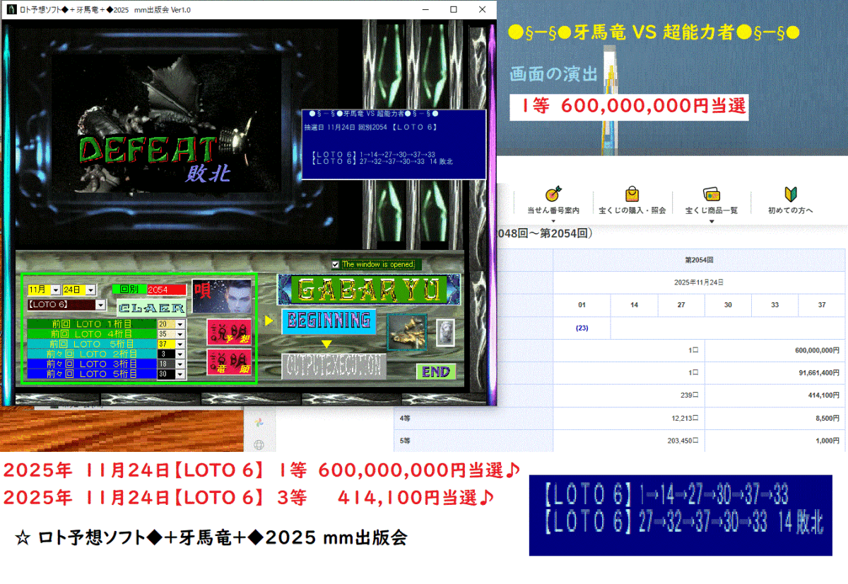 最新作 ロト予想ソフト◆+牙馬竜+◆GABARYU 2025 11月24日【LOTO 6】 1等 600,000,000円当選♪タイムセール!