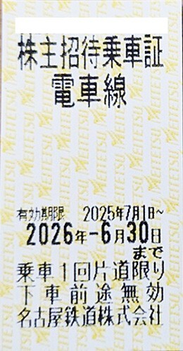 1枚で1名様1回に限り名鉄電車線にご乗車になれます。