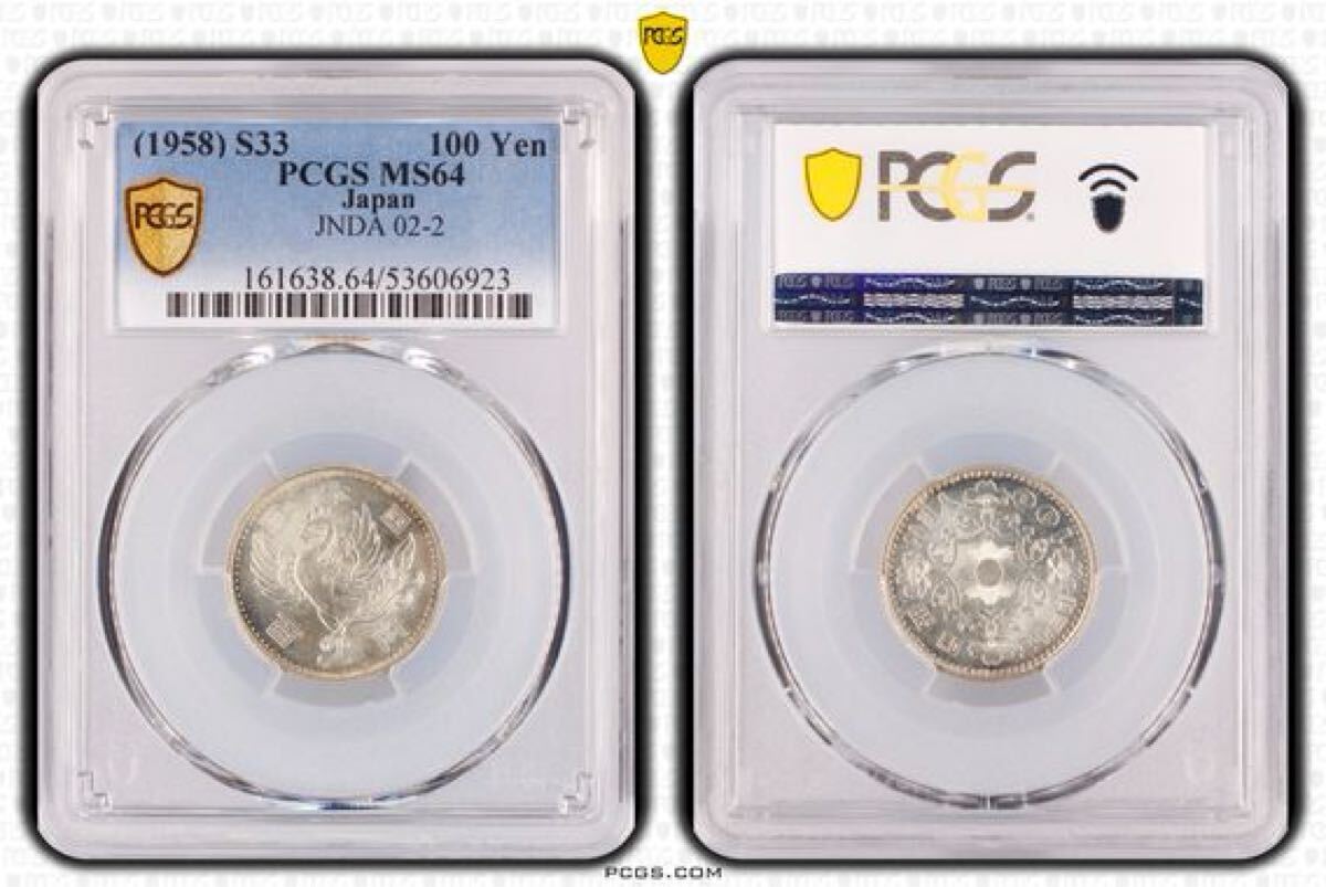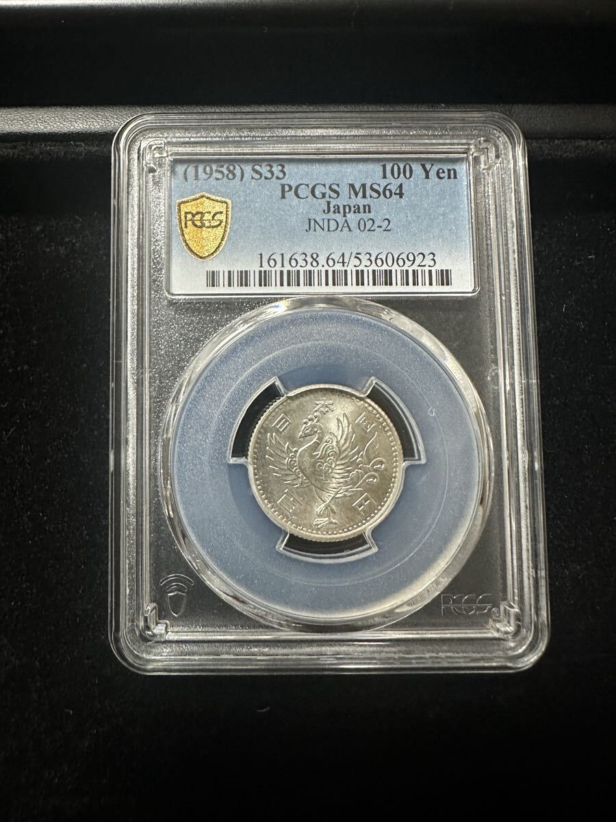 【82】鳳凰100円銀貨 PCGS MS64 百円銀貨 昭和33年 貨幣 古銭 硬貨 アンティーク 日本銀貨 スラブコイン NGC 鑑定済み
