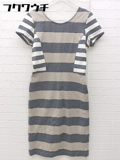 ◇ DEREK LAM 10 CROSBY デレクラム マルチボーダー 半袖 膝下丈 ワンピース サイズ2 ベージュ系 グレー系 レディース