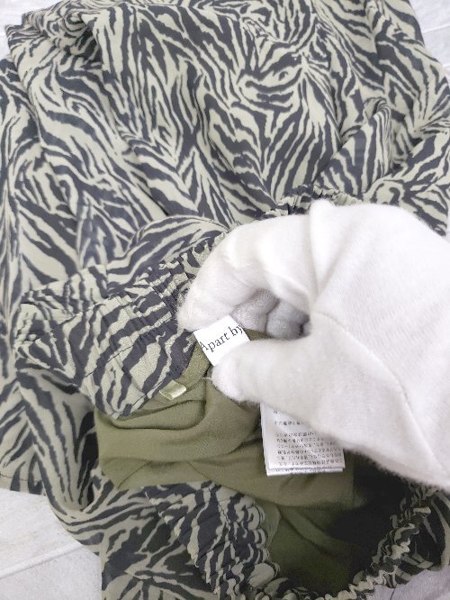 ◇ ⊂ apart by アパートバイ 総柄 ロング丈 フレア スカート サイズF カーキ ブラック レディース P