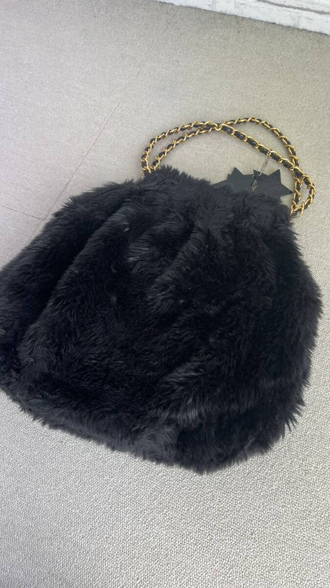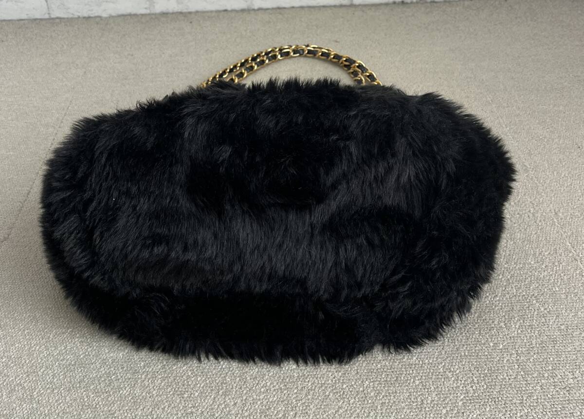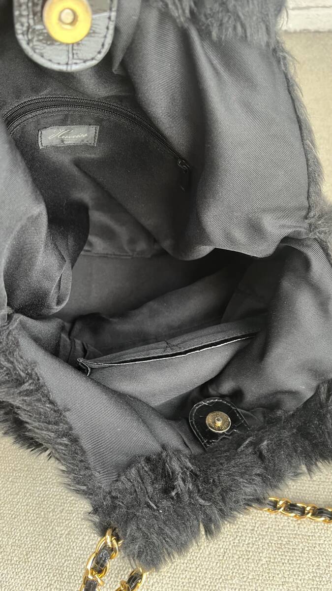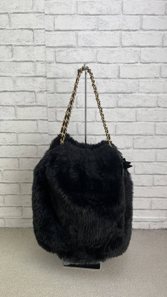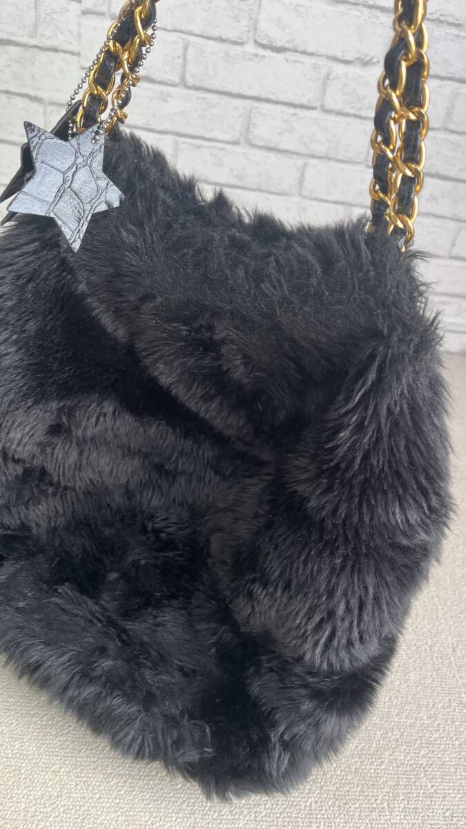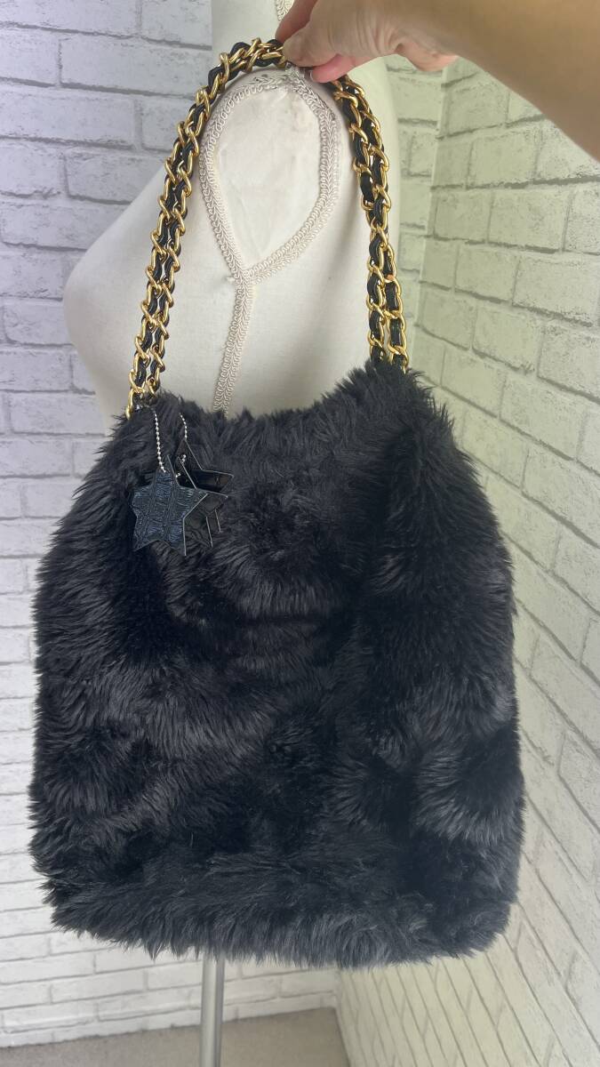 【商品説明】(K11389) ハリス/Harriss PARIS もこもこ  ファー トートバッグ ブラック/黒