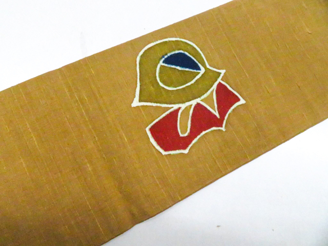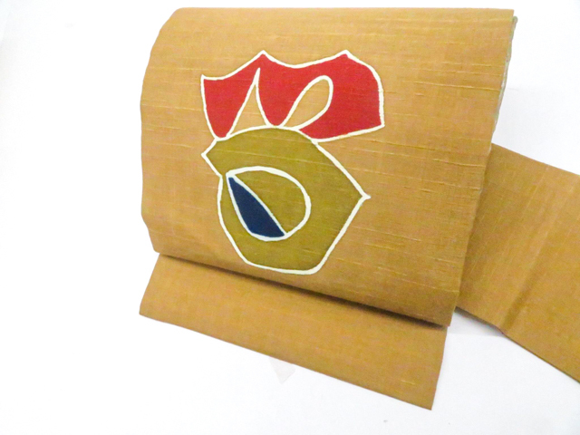 《京都一輝堂》九寸名古屋帯 紬織 太鼓柄 正絹 美品 25b11-2168
