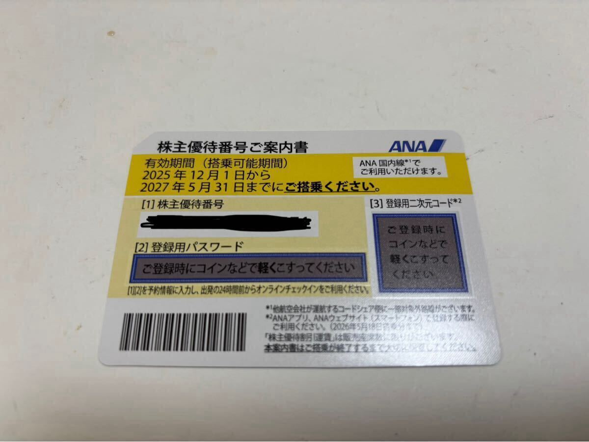 ANA株主優待の出品です。落札後、取引ナビで株主優待番号と登録用パスワードを連絡します。優待券は発送しません。チケット購入方法がわかる方の方のみ入札お願いいたします。