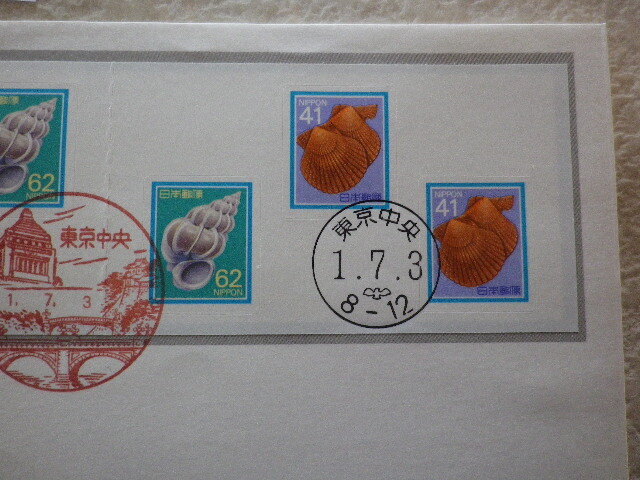 FDC セルフのり・ゆうペーン 貝 1989年 6貼3消 解説書有●10●同梱大歓迎
