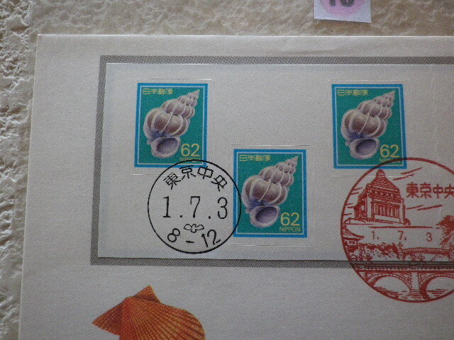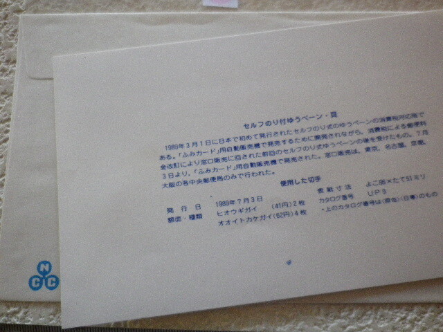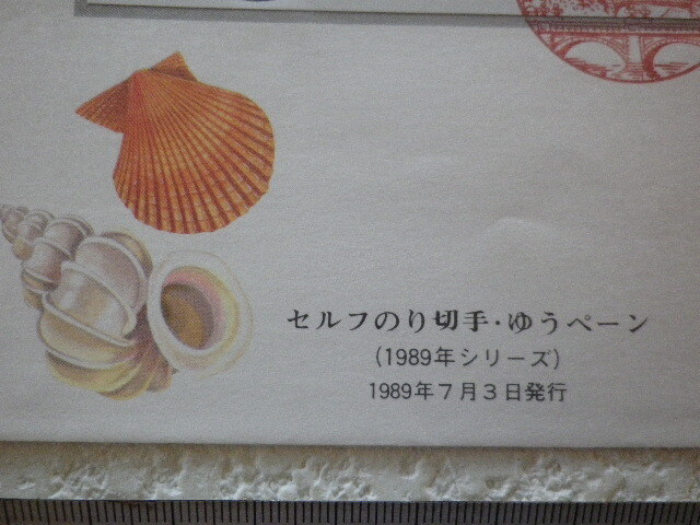 FDC セルフのり・ゆうペーン 貝 1989年 6貼3消 解説書有●10●同梱大歓迎