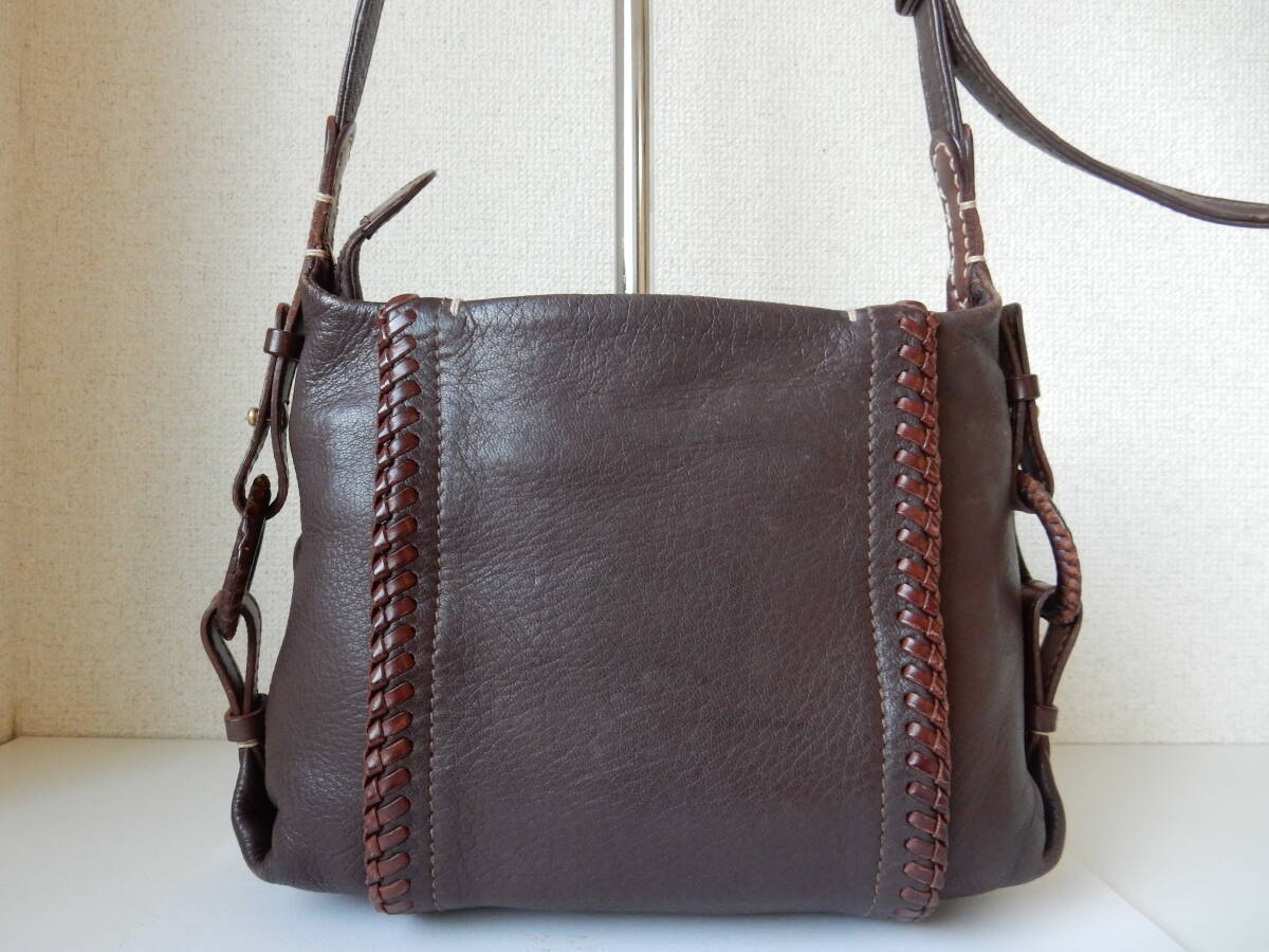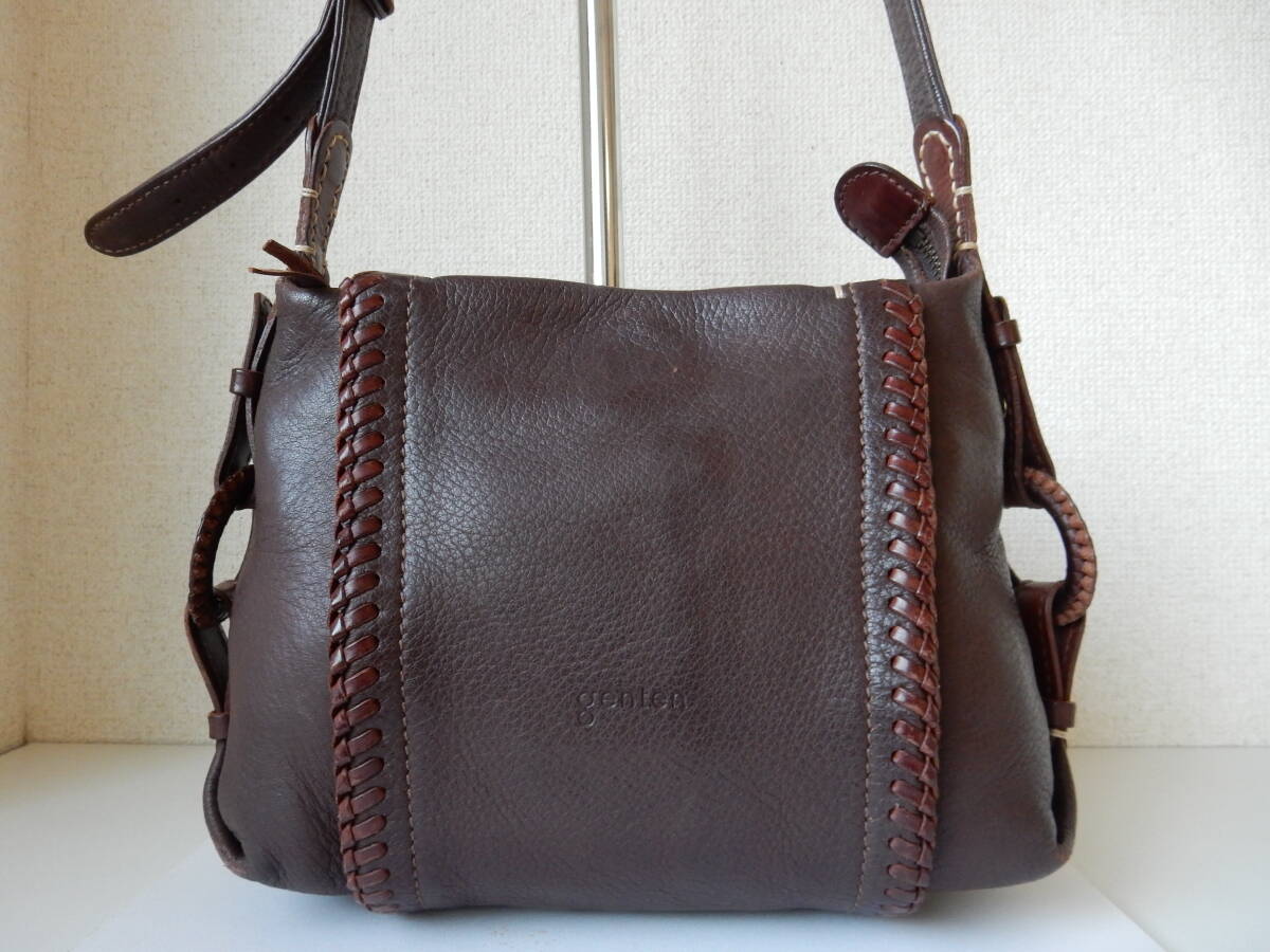 本革☆genten(ゲンテン)☆斜め掛けOK☆ショルダーバッグ ダークブラウン