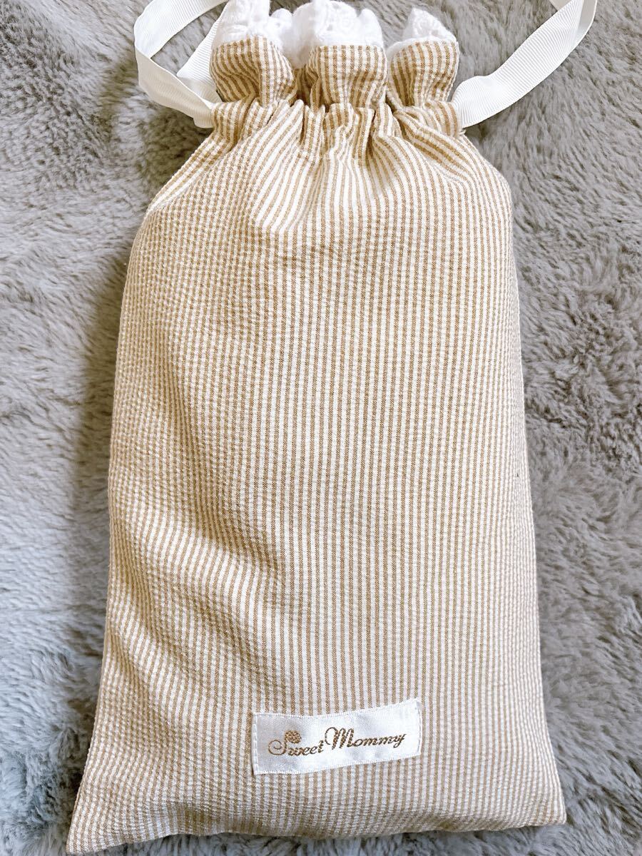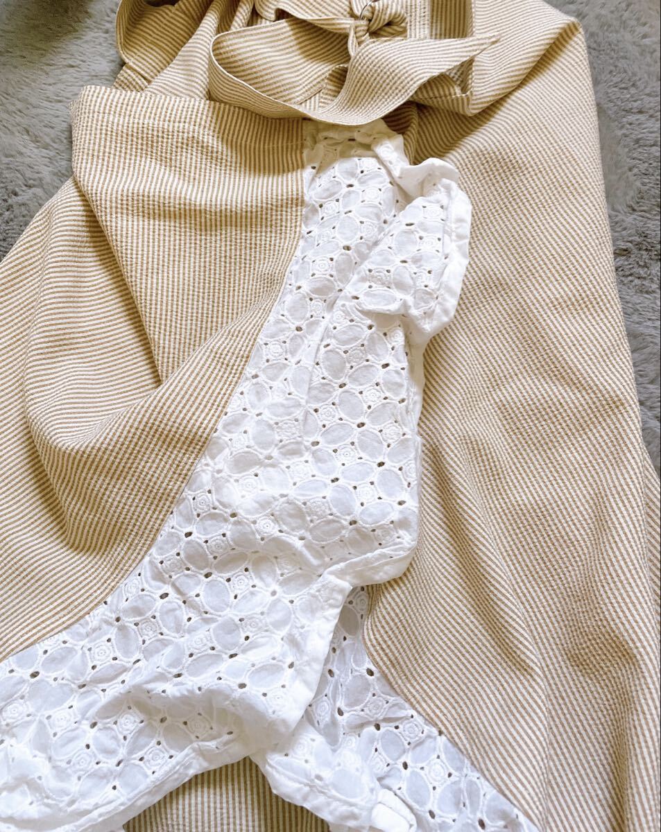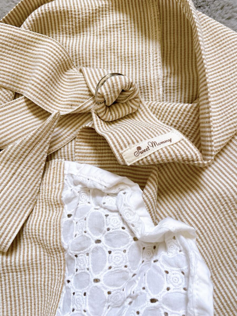 ストライプとレースのデザインの授乳カバー、調整可能なリボン付きです。
