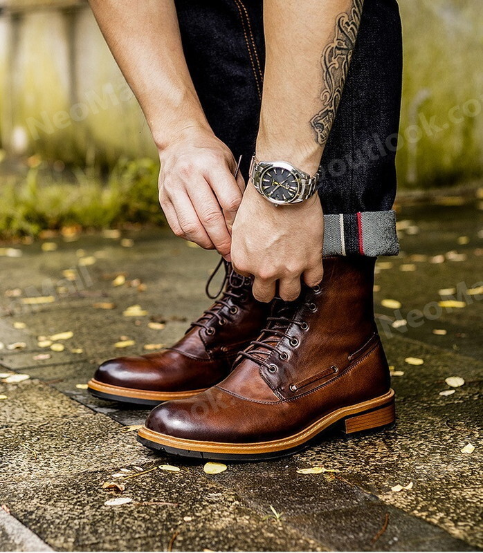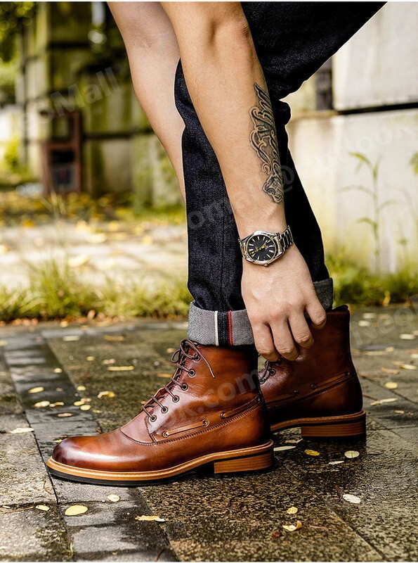 送料込☆ 本革 牛革 メンズ ショートブーツ ブラウン サイズ 25.5cm 革靴 靴 カジュアル 屈曲性 通勤 軽量 インポート品【n050】