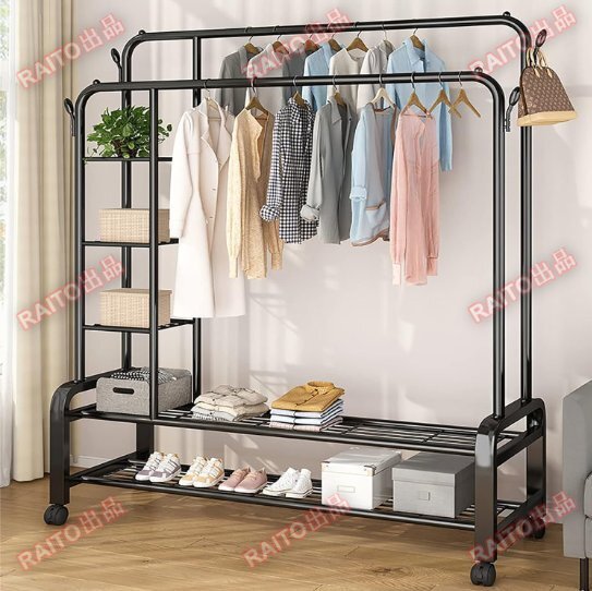 ハンガーラック 頑丈パイプハンガーラック おしゃれ洋服ラック ハンガーラック2段衣類ラック 衣類収納 多機能 120*162CM bhw0060