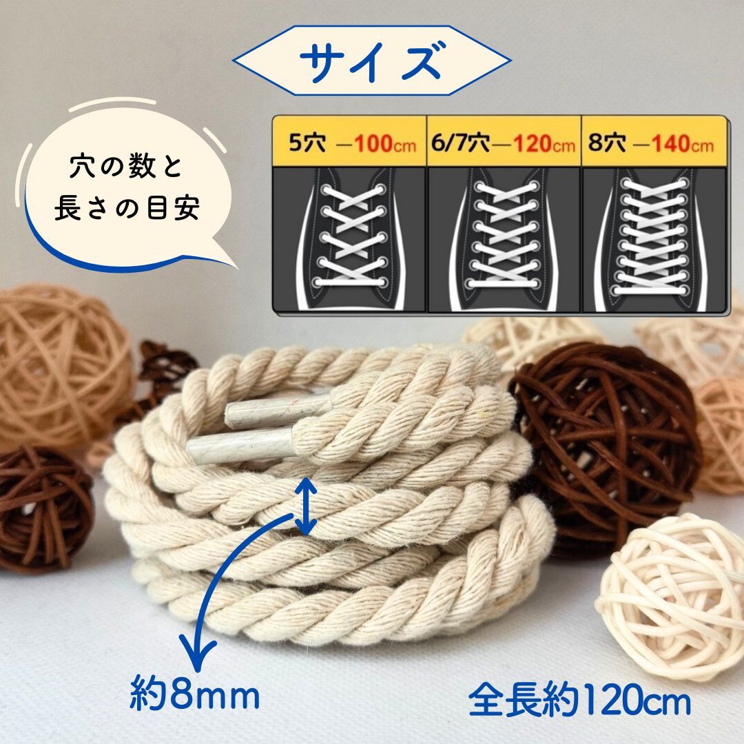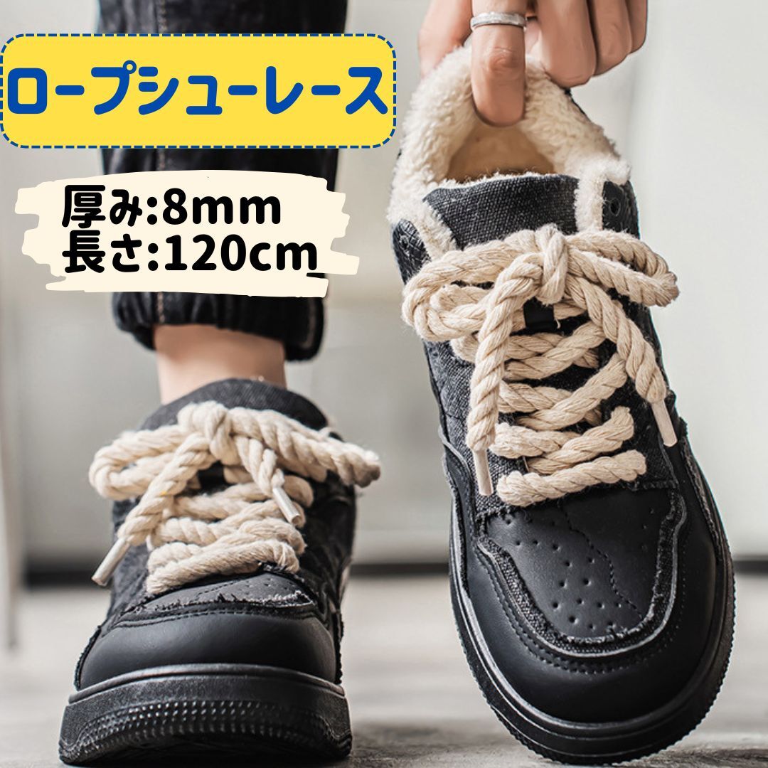 靴紐 ロープ シューレース 太め カスタム スニーカー アウトドア ストリート クリーム