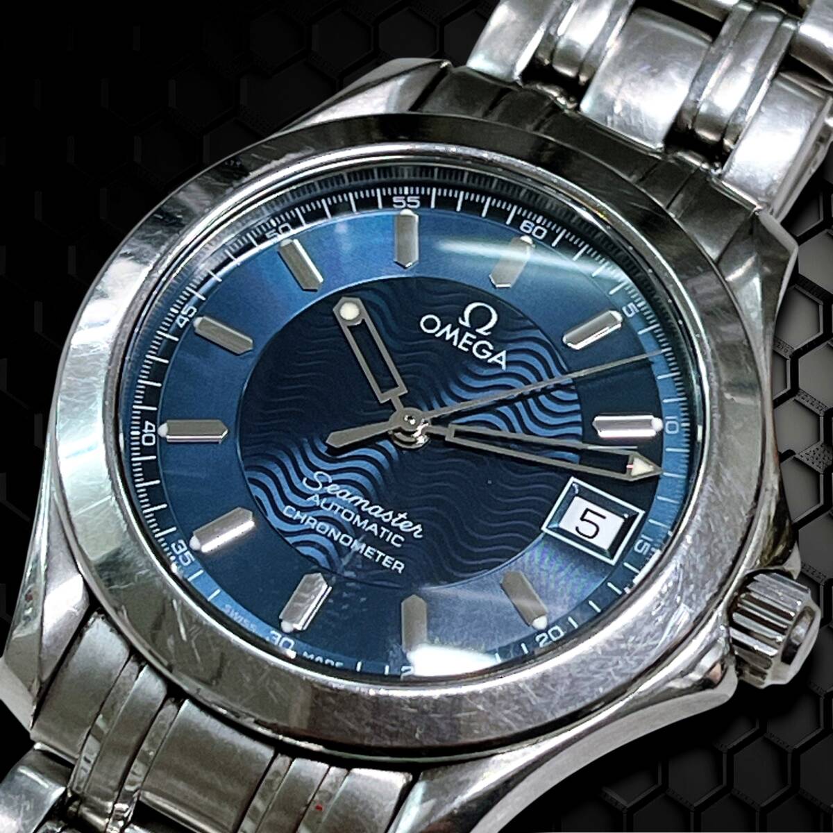 オメガ シーマスター クロノメーター 自動巻き デイト ブルー文字盤 腕時計