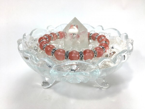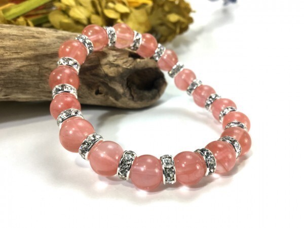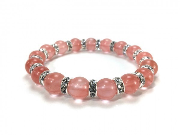 チェリークォーツ パワーストーン ブレスレット 10mm メンズ・レディース (ロンデル:シルバー) 開運 浄化 数珠ブレス♪