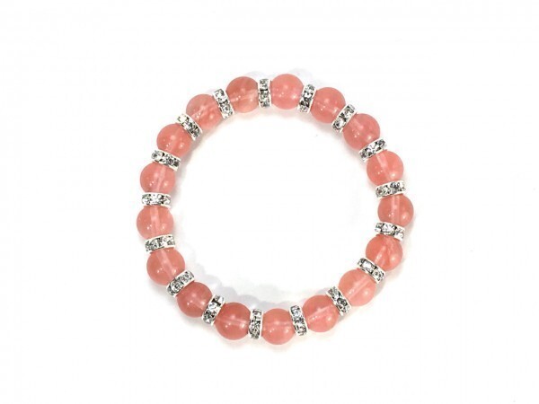 こちらは、10mm玉のチェリークォーツを使用したパワーストーンブレスレットです。間にはロンデルを挟み高級感あるブレスレットに仕上げています。石大きさは腕にも馴染みやすいように10mm玉を使用して、サイズは内径約18cmです。(サイズ調節も無料で承っています。サイズ変更の場合は落札後、取引ナビにてご一報くださいませ。) 数に限りがございますので気になる方はお早めにどうぞ。