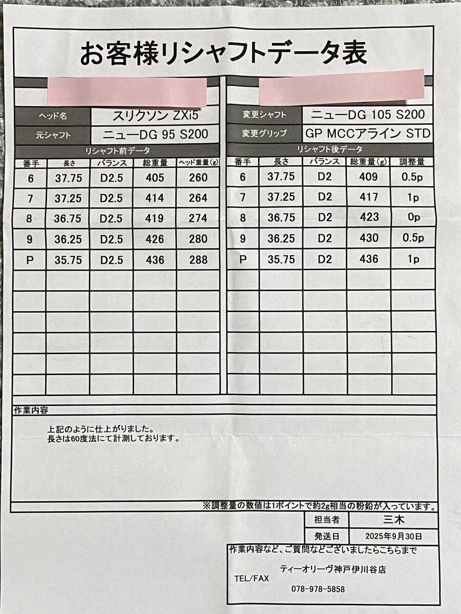 当初はダイナミックゴールド 95 S200S)が装着してあったメーカーカスタム品を購入しましたが、老舗ゴルフショップでダイナミックゴールド105 S200Sを番手ずらしでリシャフトした商品を出品します。スペックにつきましては、リシャフトデータ表で確認してください。