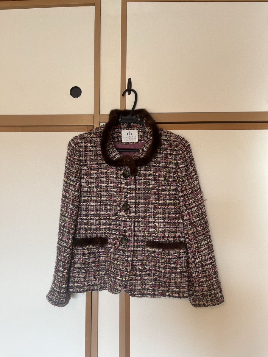 hb 銀座花菱のウール混紡ジャケット、ファー付きでスタイリッシュ。