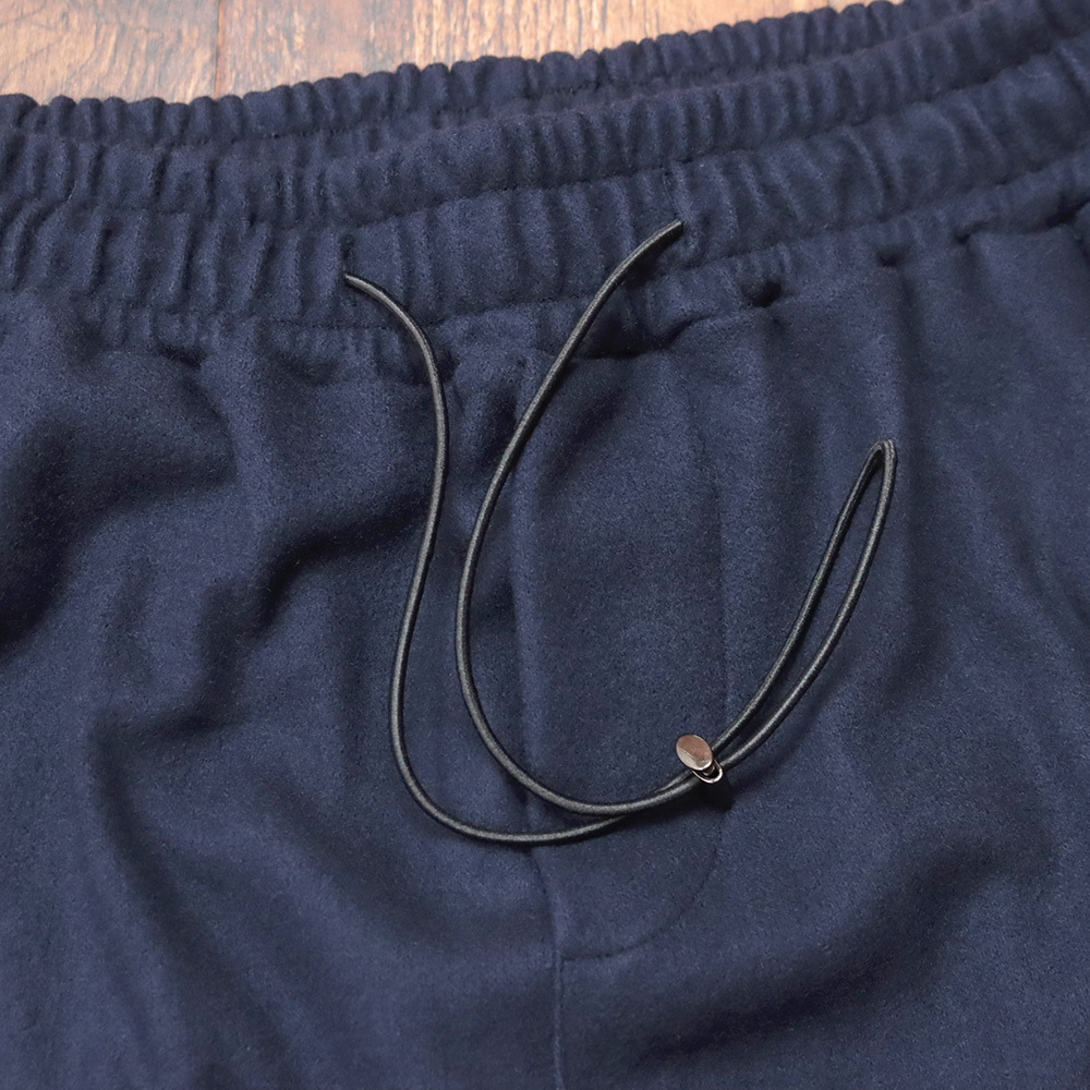シルエットは、腰まわりにややゆとりを持たせ、裾に向かってテーパードするスマートなジョガースタイル。裾はコードストッパーで足元を引き締め、ウエストはゴム+コードストッパーのイージー仕様で快適な着用感を実現。見た目のクリーンさと機能性を兼ね備えたつくりです。スウェットのような快適さと、スラックスのような洗練さを併せ持つ万能パンツ。カットソーやスニーカーと合わせたデイリースタイルはもちろん、シャツやジャケットと組み合わせてモードに振るなど、シーンに応じた幅広いコーディネートが楽しめます。日常に上質な抜け感を添えるジョガーパンツです。