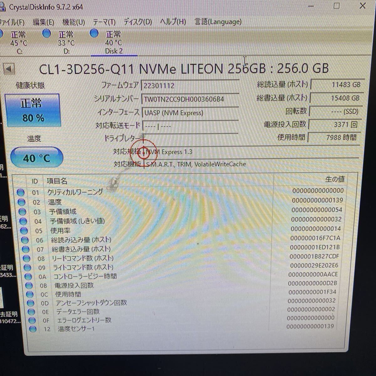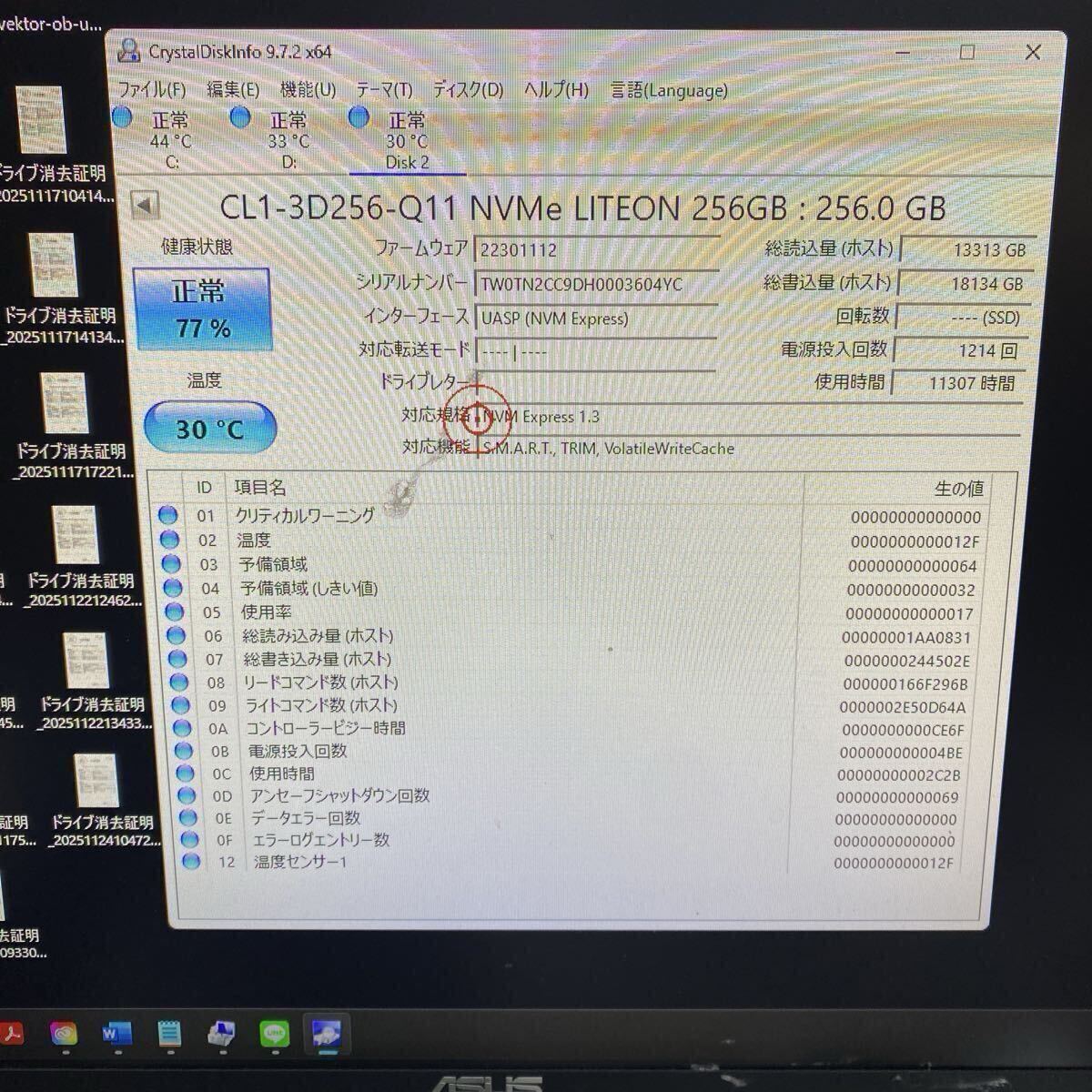 SSD256GB 2個セット/ NVMe /クリスタルディスクインフォでの正常確認済み 画像あり