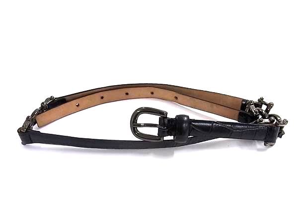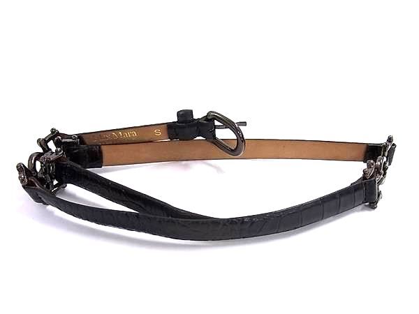 1円 ■美品■ Max Mara マックスマーラ クロコダイル型押しレザー シルバー金具 ベルト 表記サイズ S レディース ブラック系 FU7693