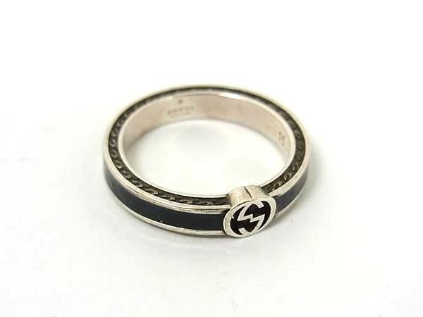 1円 GUCCI グッチ インターロッキングG SV925 リング 指輪 アクセサリー 表記サイズ15 (約14号) メンズ シルバー系×ブラック系 FU7120