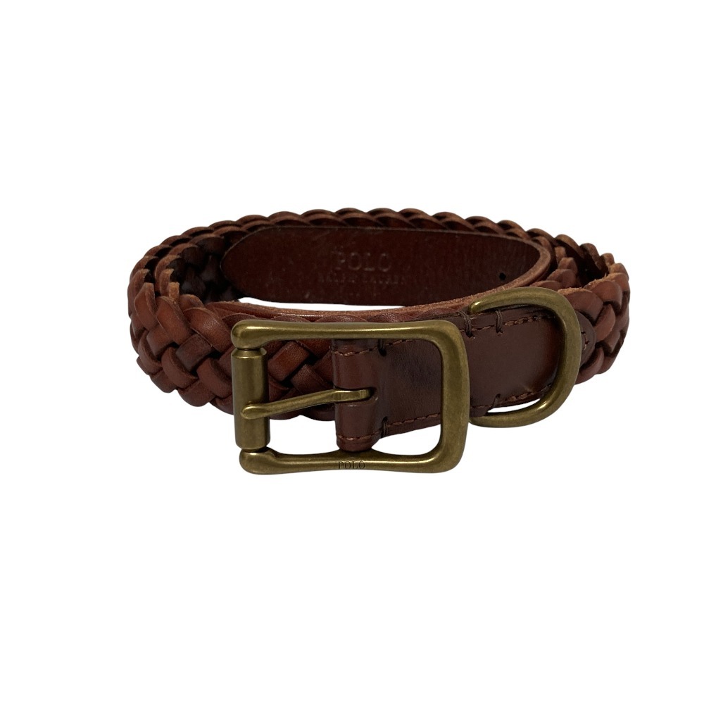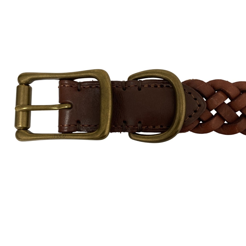 美品 POLO RALPH LAUREN ポロラルフローレン レザー メッシュベルト W32 80cm ブラウン