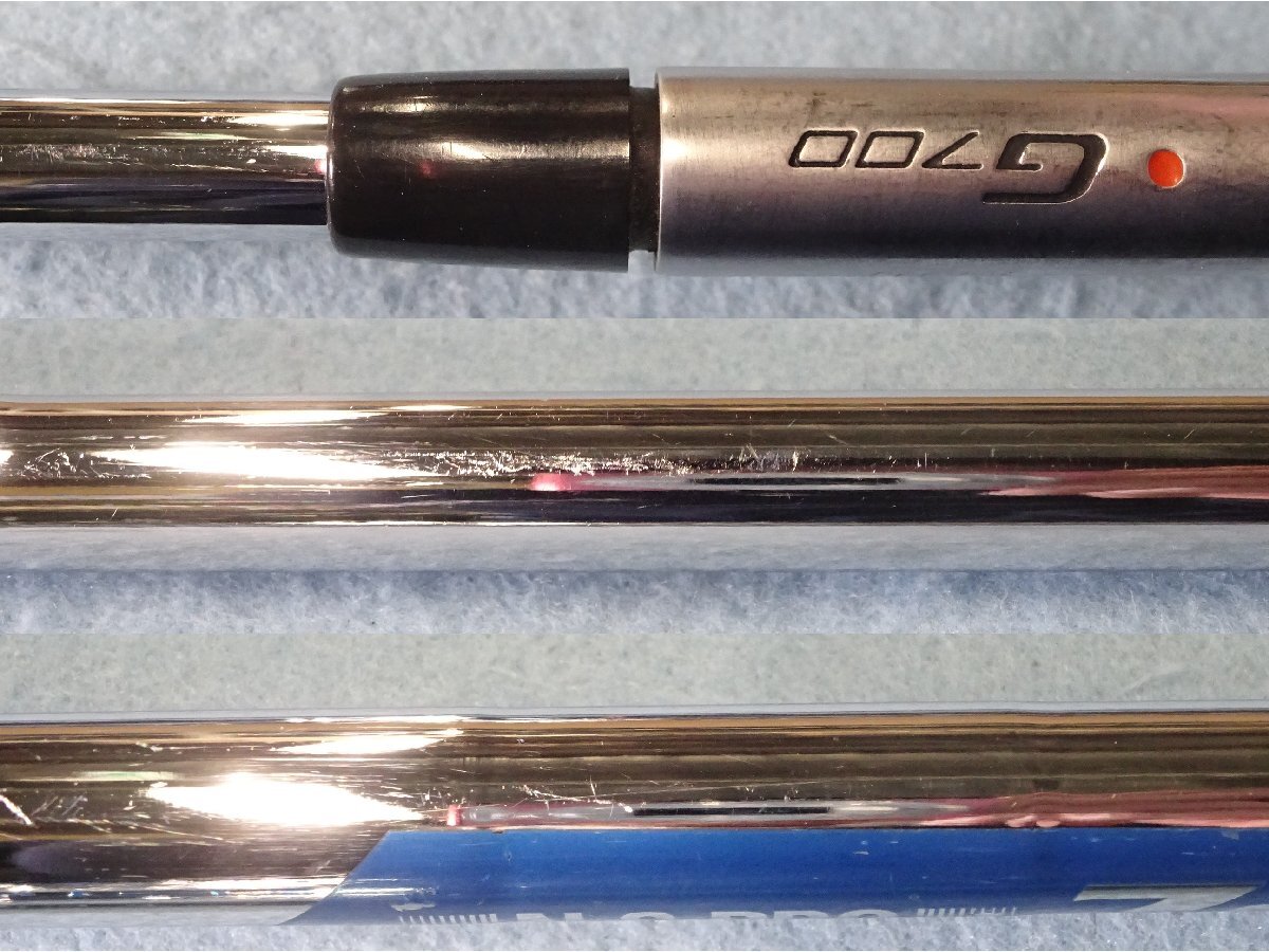 | ・ライ角カラーは、オレンジ。 ・ネックのシリアルナンバー、一致。 ・全番手にパワースペックシールあり。 【訳あり品・特注品】 ・ライ角カラーが「オレンジ」の特注品です。 ライ角がメーカー公表値と比べ「-2°」調整されています。 ・N.S.PRO ZELOS 6の場合、グリップカラーコードの標準が「レッド」のはずですが、本商品は「アクア」の為、こちらも特注かと思われます。また、レッドからアクアに変更されている為、メーカー公表値よりも「5~6g」重く、バランスが1ポイント程度軽くなっています。 ・スコアラインに点サビがある為、訳あり品とさせて頂きます。 少しでも気になる方は、ご入札をお控え下さい。 | |