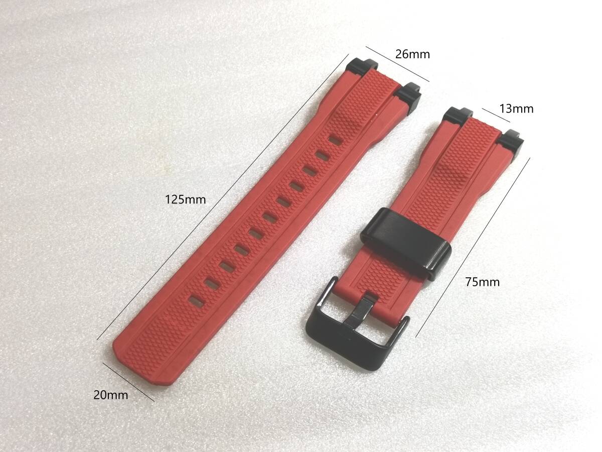 | G-SHOCK 互換用ベルトになります 【サイズ】 長さ 125mm/75mm ラグ幅 26mm 取付幅 13mm 尾錠幅 20mm 【カラー/素材】 ベルト レッド/ラバー ベルトループ、バックル ブラック/ステンレス エンドリンク ブラック/アルミ 【重量】 36g 【適合モデル】 MTG-B1000 G1000 【付属品】六角棒レンチ 2本 送料無料 迅速・丁寧に発送いたします ※機器の都合により商品の色合いは若干異なります ※対応機種以外の取付けはできません | |||