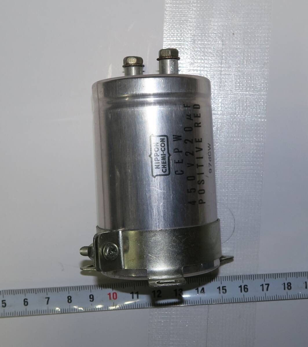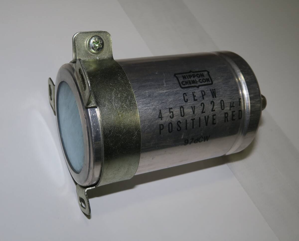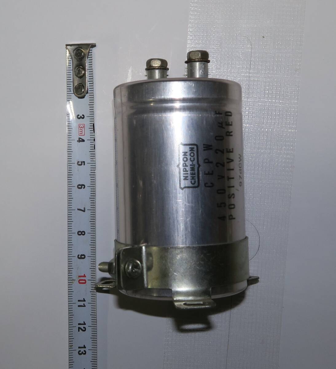 ◆220μF450V 電解コンデンサー中古良品◆容量計にて測定、260μF指示。信頼ある日本ケミコン製なので安心使用できます。真空管アンプの電源等に活用してください。
