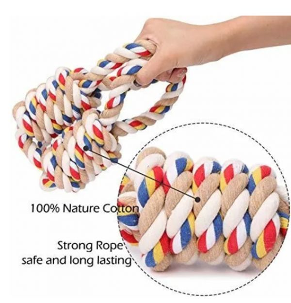 ロープ玩具は、ワンちゃんにとって最高の綱引き犬用おもちゃです。ワンちゃんと一緒に綱引きをすることで、コミュニケーションをとり、関係を強化しながら、ワンちゃんを健康で幸せに保ちましょう。 屋外のトレーニングにも適しています。 犬用のロープのおもちゃは、2匹の犬が同時に遊ぶのに十分な長さです。 ワンちゃん同士でも、猛烈な綱引きが可能です。