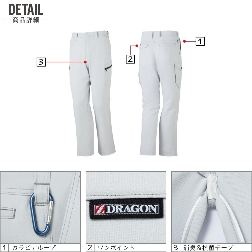 Z-DRAGON ジィードラゴン 秋冬 製品制電 ノータック カーゴパンツ JIS規格 帯電防止服 71302 色:シルバー サイズ:79